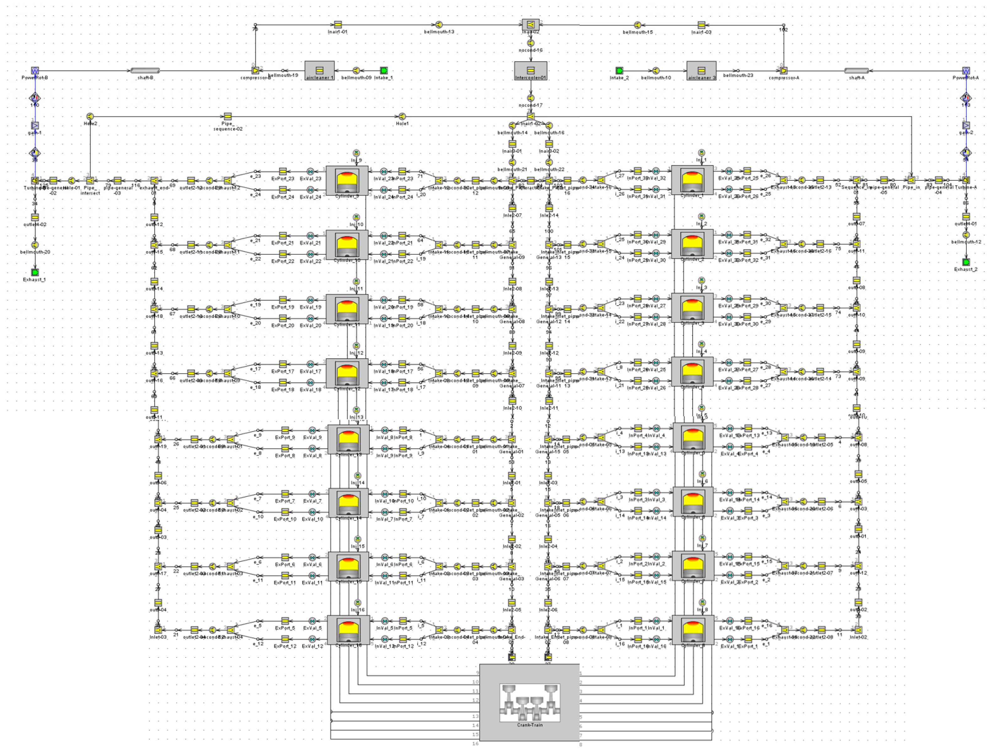| Operating Condition No. | Speed (rpm) | Load (%) | Power (kW) | Torque (N·m) | Fuel Injection Quantity per Cycle (mg/cycle) | Air/Fuel Ratio | Supercharger Speed (rpm) | Supercharger Pressure Ratio | Temperature Before Turbine (°C) |
