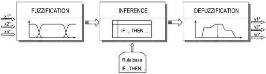 Fuzzy sets and the fuzzy logic apparatus can be used to build highly usable models. Their primary value is that they facilitate analysis and inference from descriptive, imprecise, and uncertain data. The fuzzy inference process [39] first involves the conversion of quantitative input data into linguistic notions (fuzzification). Next, output qualitative values (sets) are determined with a rule base (inference). Last, the output fuzzy sets are transformed into quantitative variables (defuzzification). Figure 1 shows a diagram of a fuzzy system with multiple inputs and outputs.