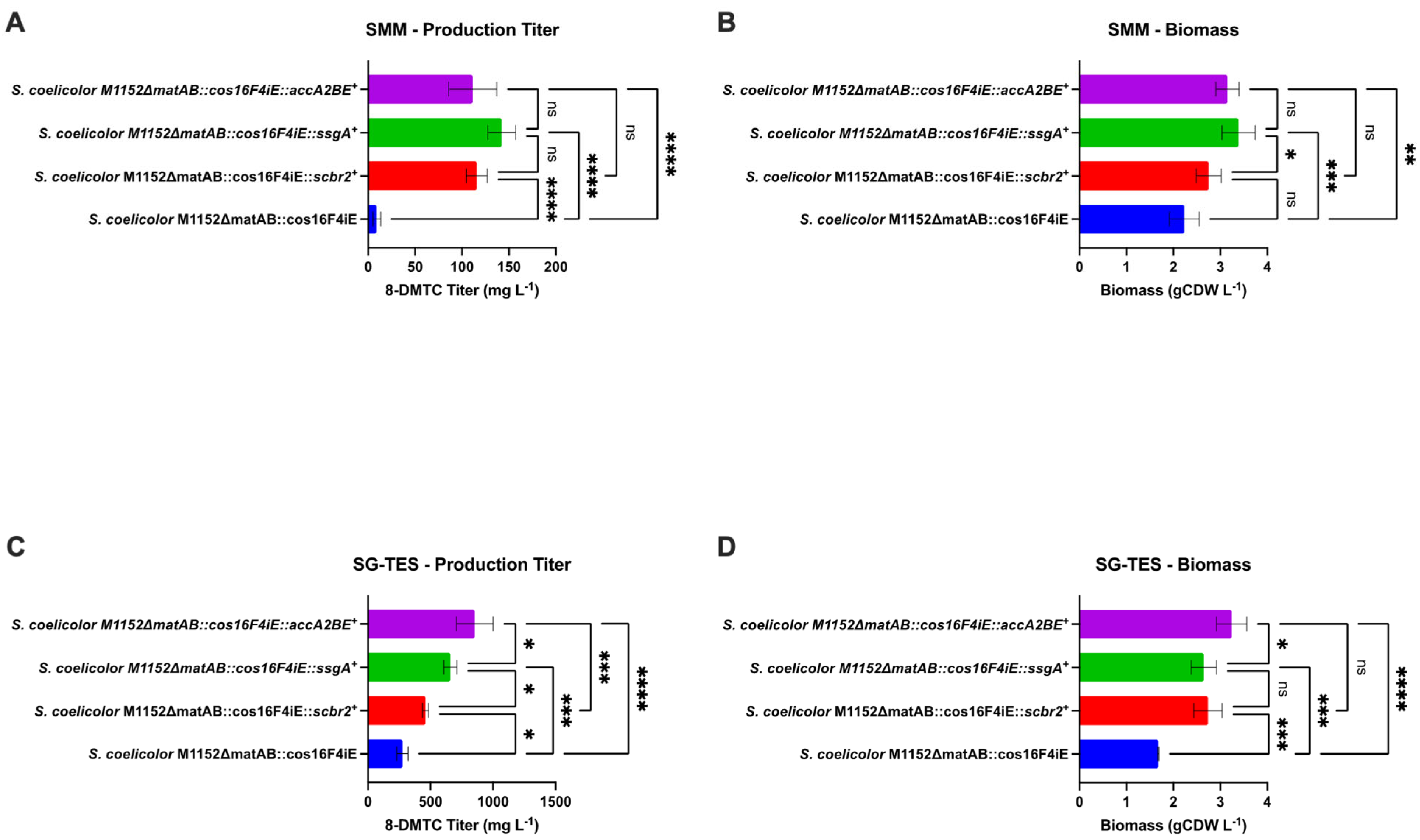 3.1. Metabolic Engineering of 8-Demethyl-Tetracenomycin C Production
