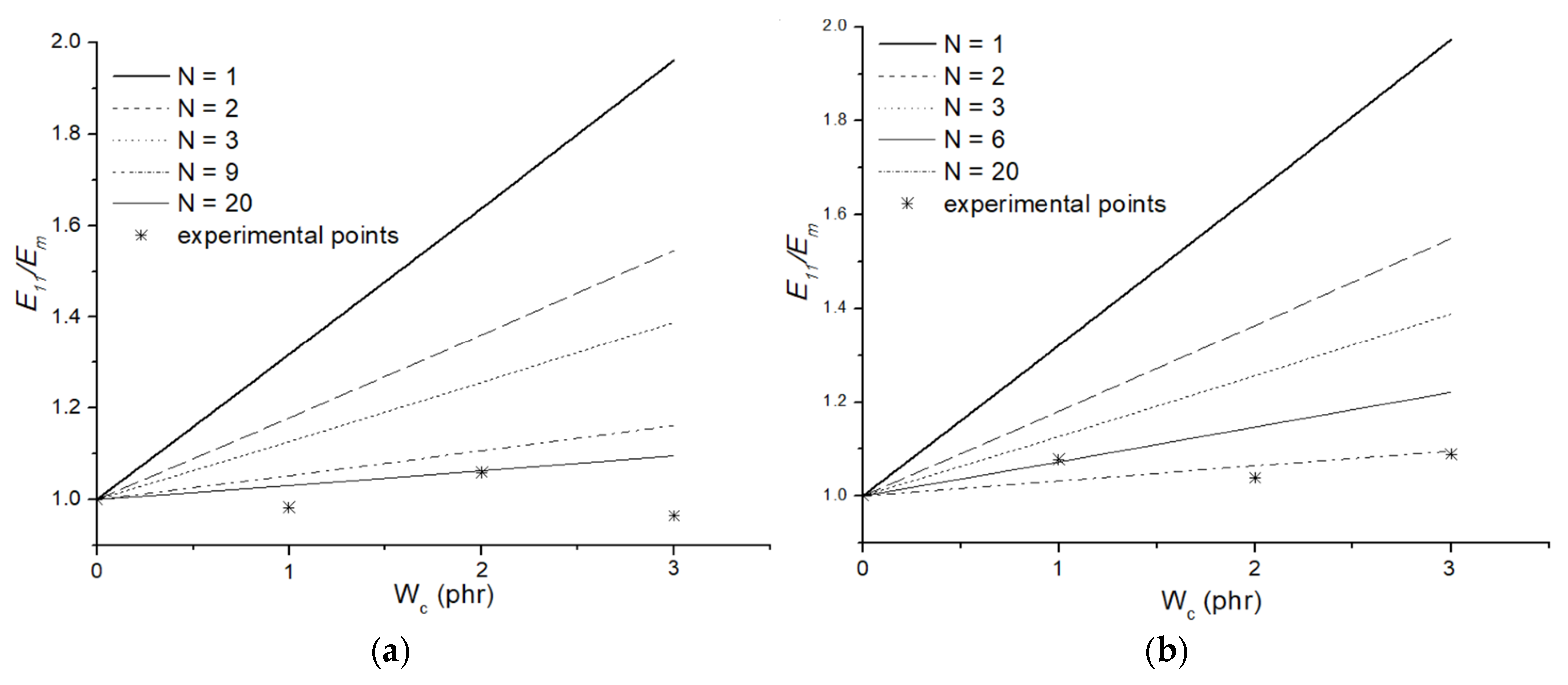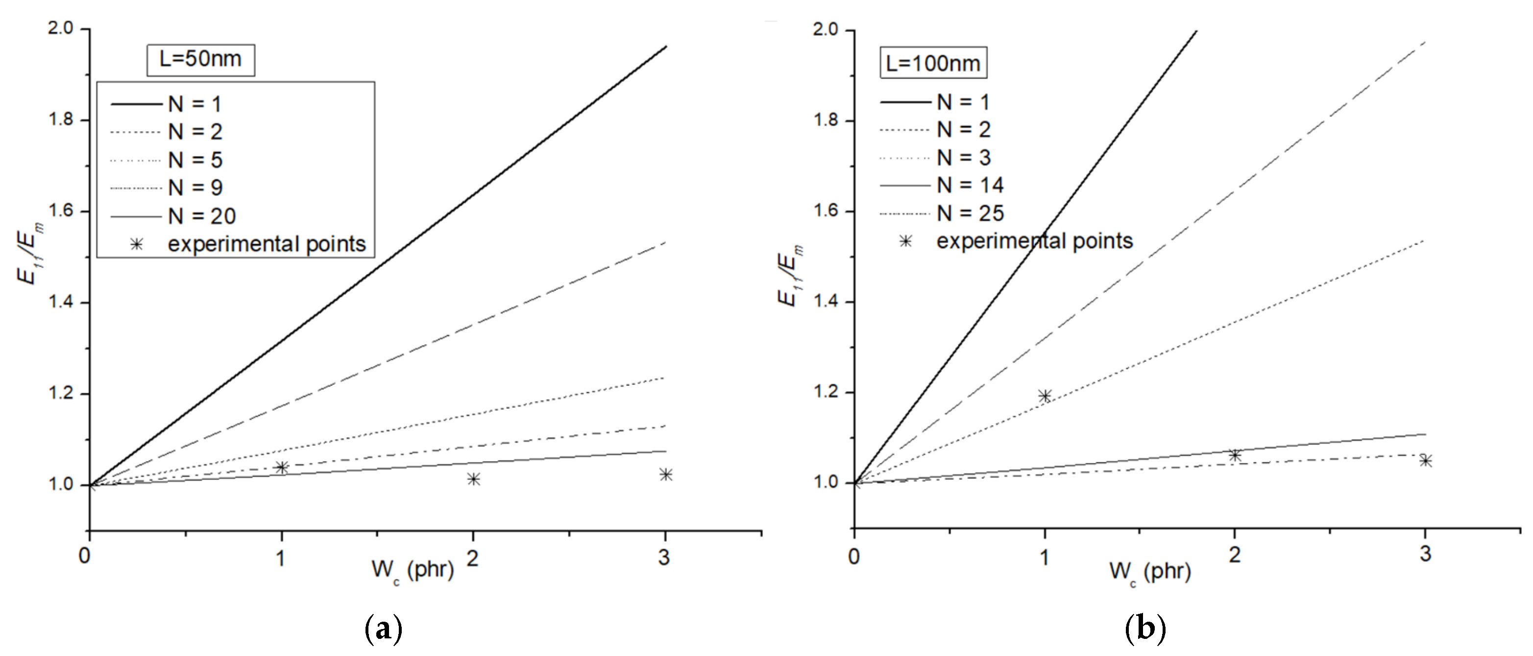 - Liu, H.; Brinson, L.C. Reinforcing efficiency of nanoparticles: A simple comparison for polymer nanocomposites. Compos. Sci. Technol. 2008, 68, 1502–1512. [Google Scholar] [CrossRef]