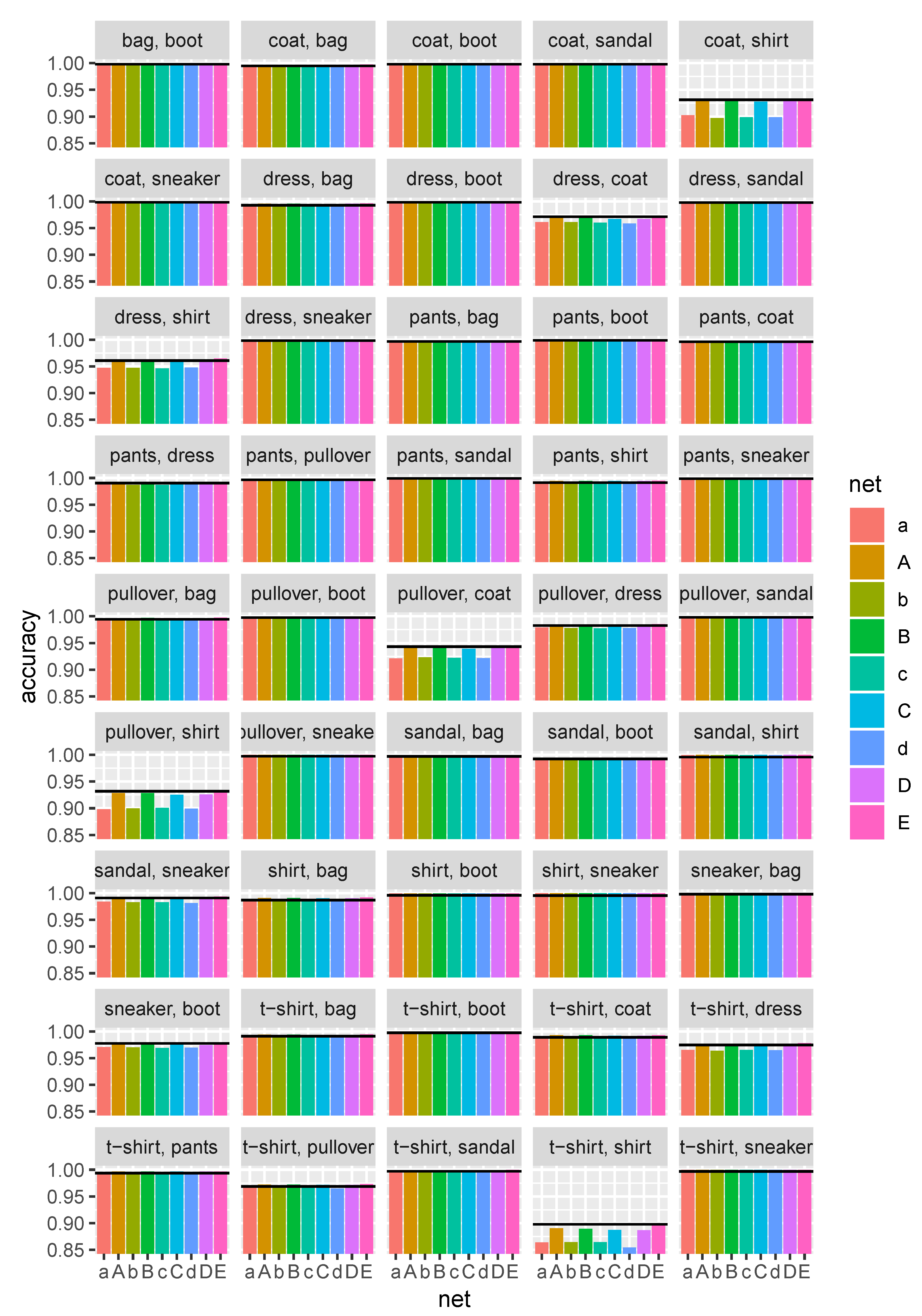 Section 1, we introduced the concept of pairwise explainability. This concept refers to the situation where we are confident that only two possible predictions are possible and we desire the best possible prediction by a convolutional neural network. Of course, one may obtain a two-class prediction by taking the IIA restriction of a multi-class classifier. But is it possible to obtain better results by training specialized binary networks on only two classes?