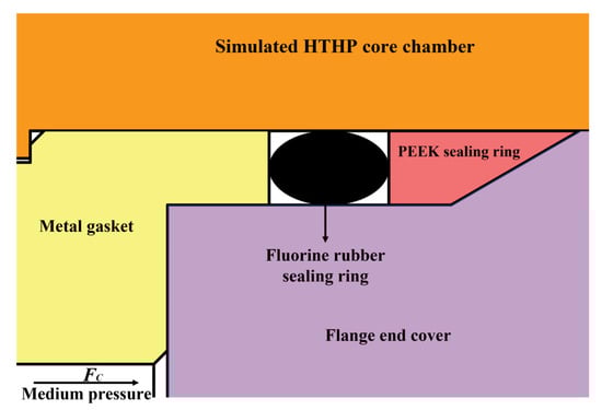 The end faces on both sides of the chamber are sealed using flanged connections with bolted fastening. A composite sealing structure comprising a metal snap-ring gasket, conical PEEK washer, and high-temperature-resistant O-ring is adopted for end-face sealing between the chamber and end covers. The schematic diagram of the sealing structure is illustrated in Figure 8.