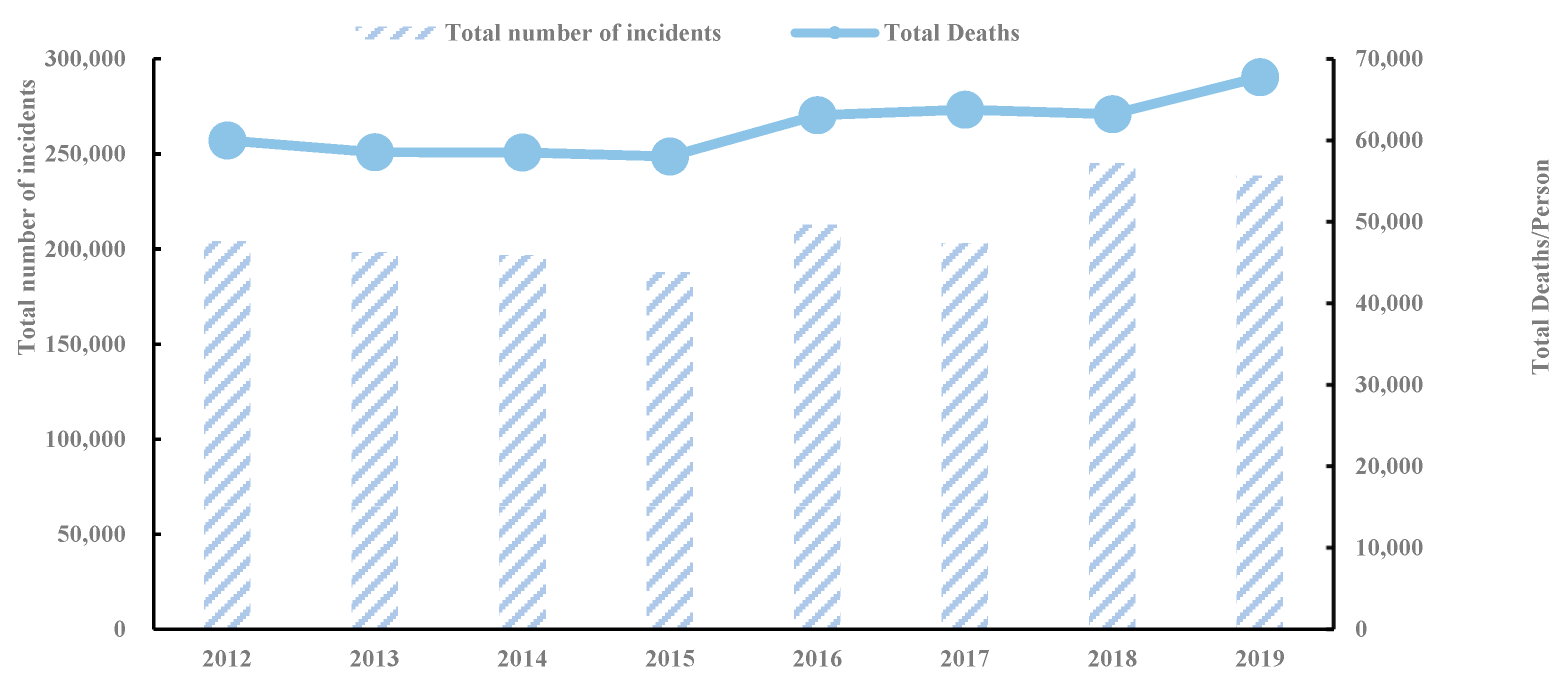 Figure 4. Statistics on road traffic accidents in China (2012–2019).