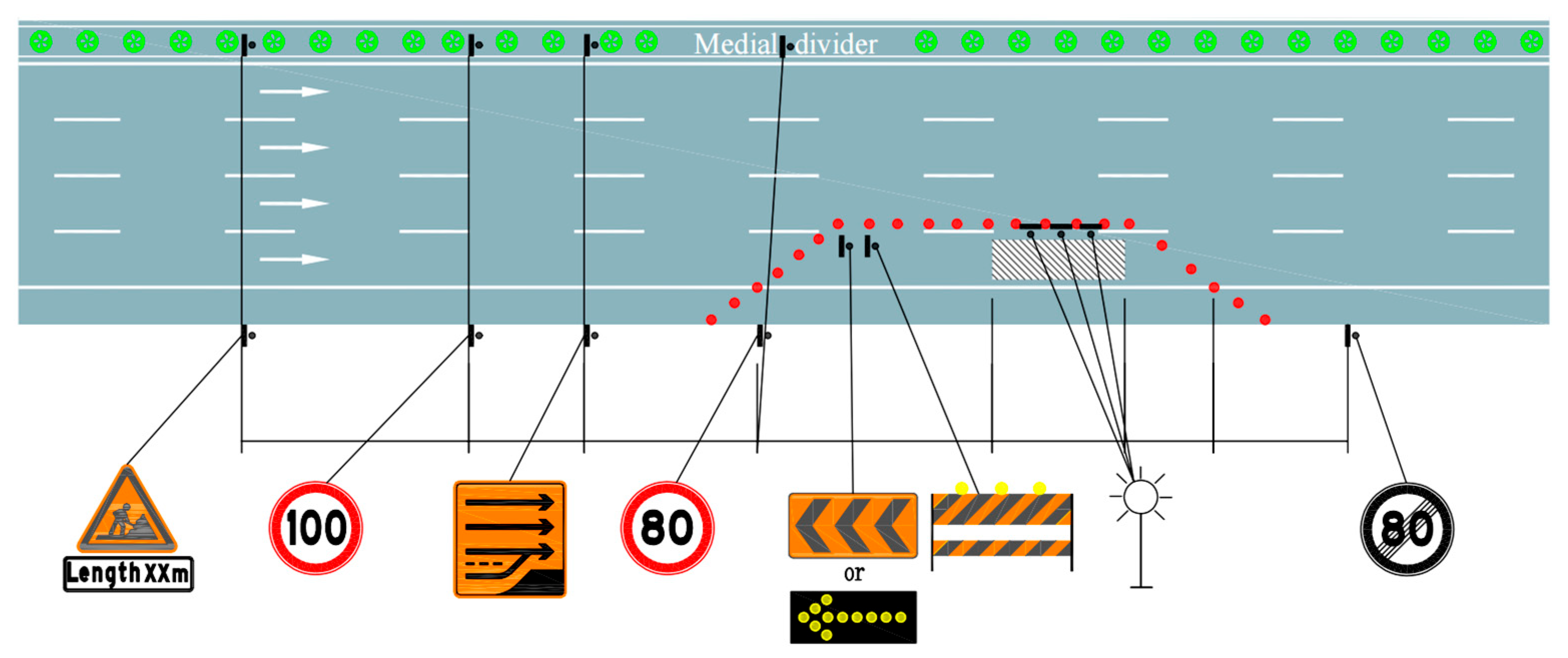 Figure 6. Work-zone layout of an expressway maintenance road section.