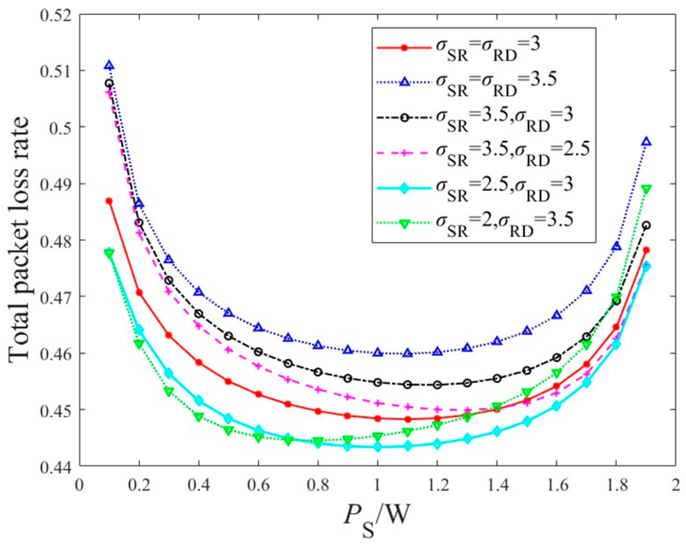 Figure 10. Comparison of system packet loss rate under different fading parameters.
