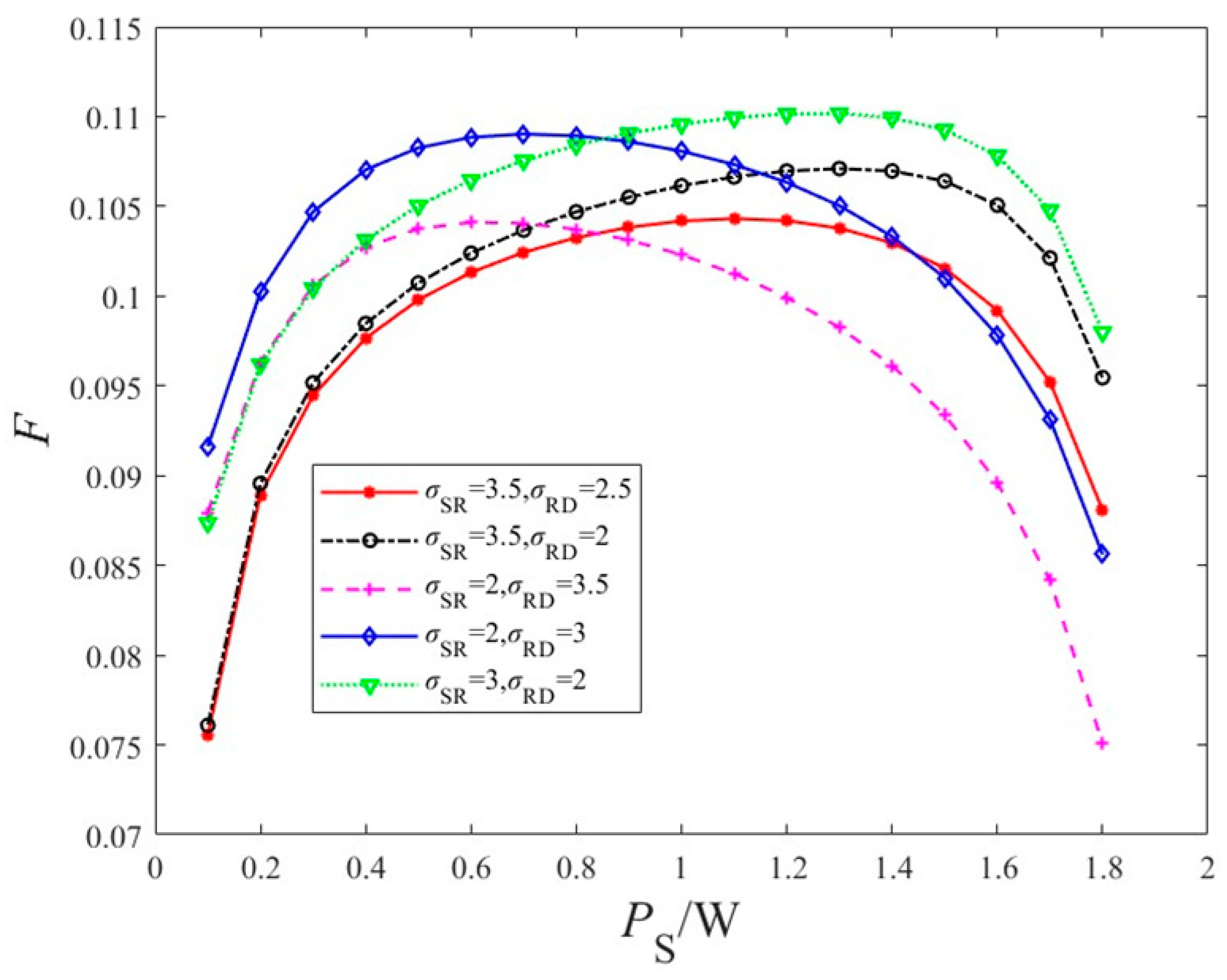 h SR and h RD denote the channel fading coefficients for the S–R link and R–D link, respectively. Considering that power-line channel fading follows a log-normal distribution (LgN-D) and assuming that all channels are independent, the fading coefficients for the S–R and R–D links satisfy the log-normal distribution: