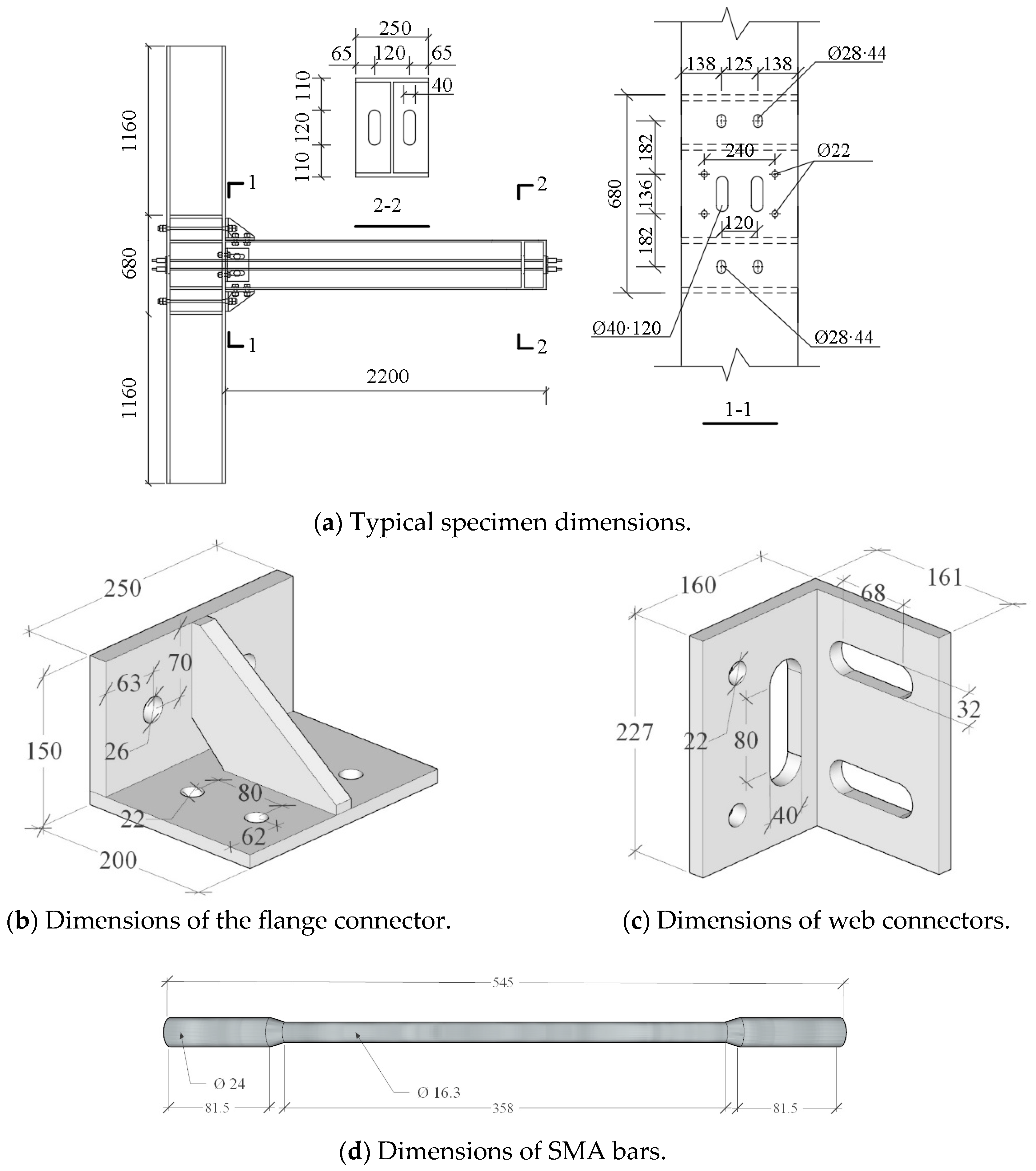 23. Mo, Z.; Feng, Q.; Lai, B.L.; Jiang, W.-Q.; Feng, Y. Resilient performance of super-elastic SMA bolted connection with extended end plate and shear tab. J. Constr. Steel Res. 2022, 199, 107626. [Google Scholar] [CrossRef]