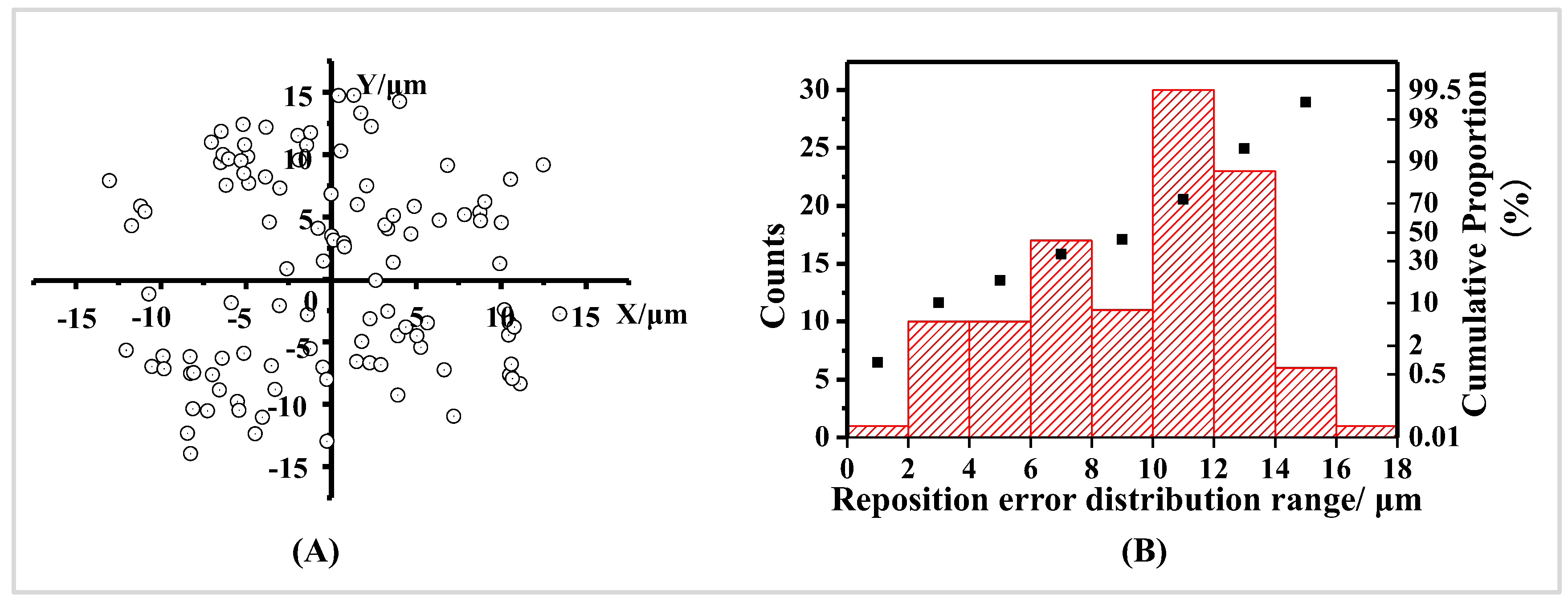In the experiments, the first positioning strategy was carried out. Details of the positioning operation and the statistics method of the positioning error distribution range are listed in the