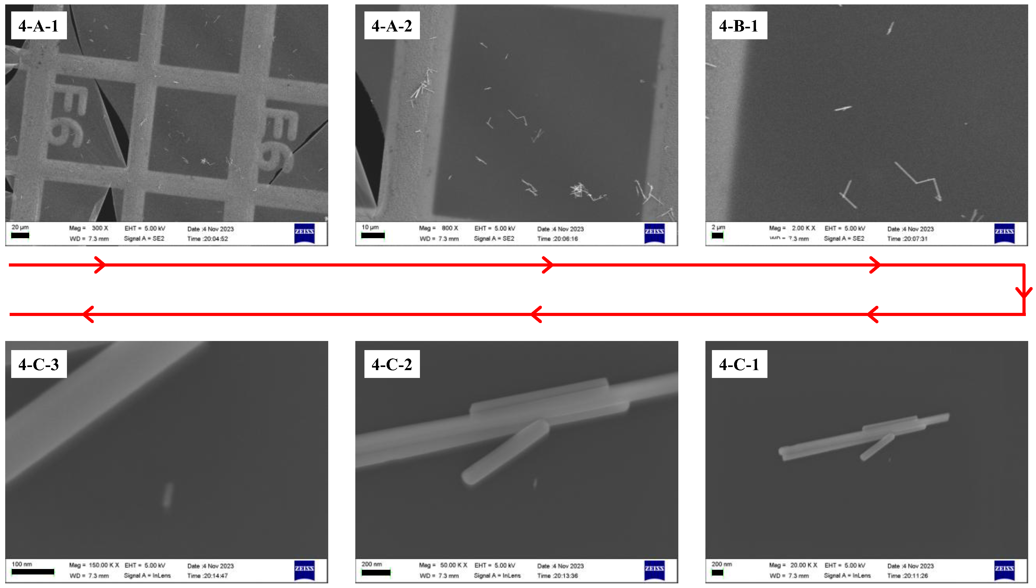 The JEOL 1400+ TEM was selected for initial observation, and the Zeiss Merlin SEM (Carl Zeiss Co., Ltd., Cambourne, Cambridge, UK) was used for retrieval.