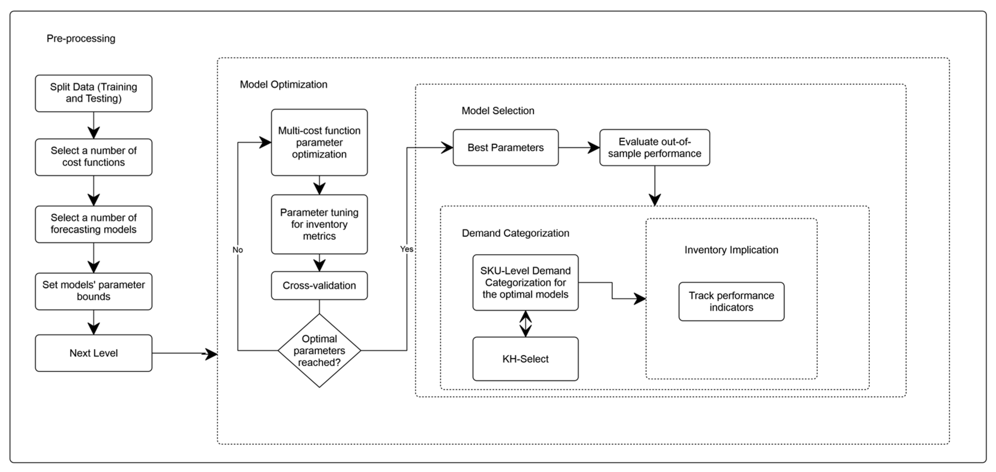 | 10. Final Per-SKU Selection | Among all methods optimized under their preferred cost, select method with lowest test loss | Per-SKU results | Chosen model–cost–parameter triple | Final MCOST-optimized forecast per SKU |