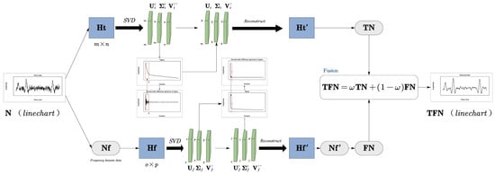 where is an orthogonal matrix composed of eigenvectors NNT, is an orthogonal matrix composed of eigenvectors NTN and Σ is a diagonal matrix composed of singular values in descending order. The first 10% or even 1% of the singular values of Σ can contain more than 90% of the energy information of N [31]. In other words, small singular values mean that their contribution to the effective signal is small.