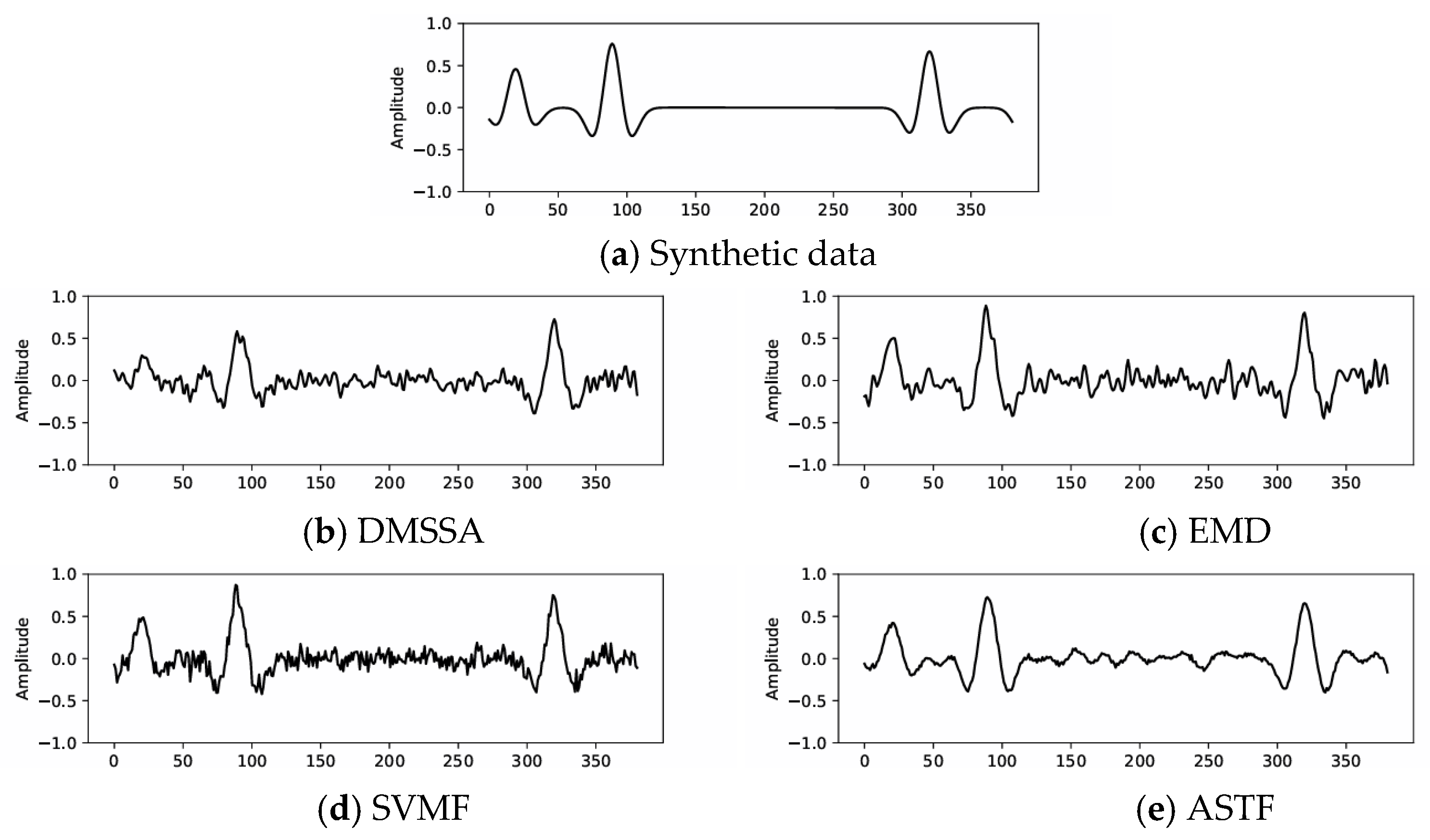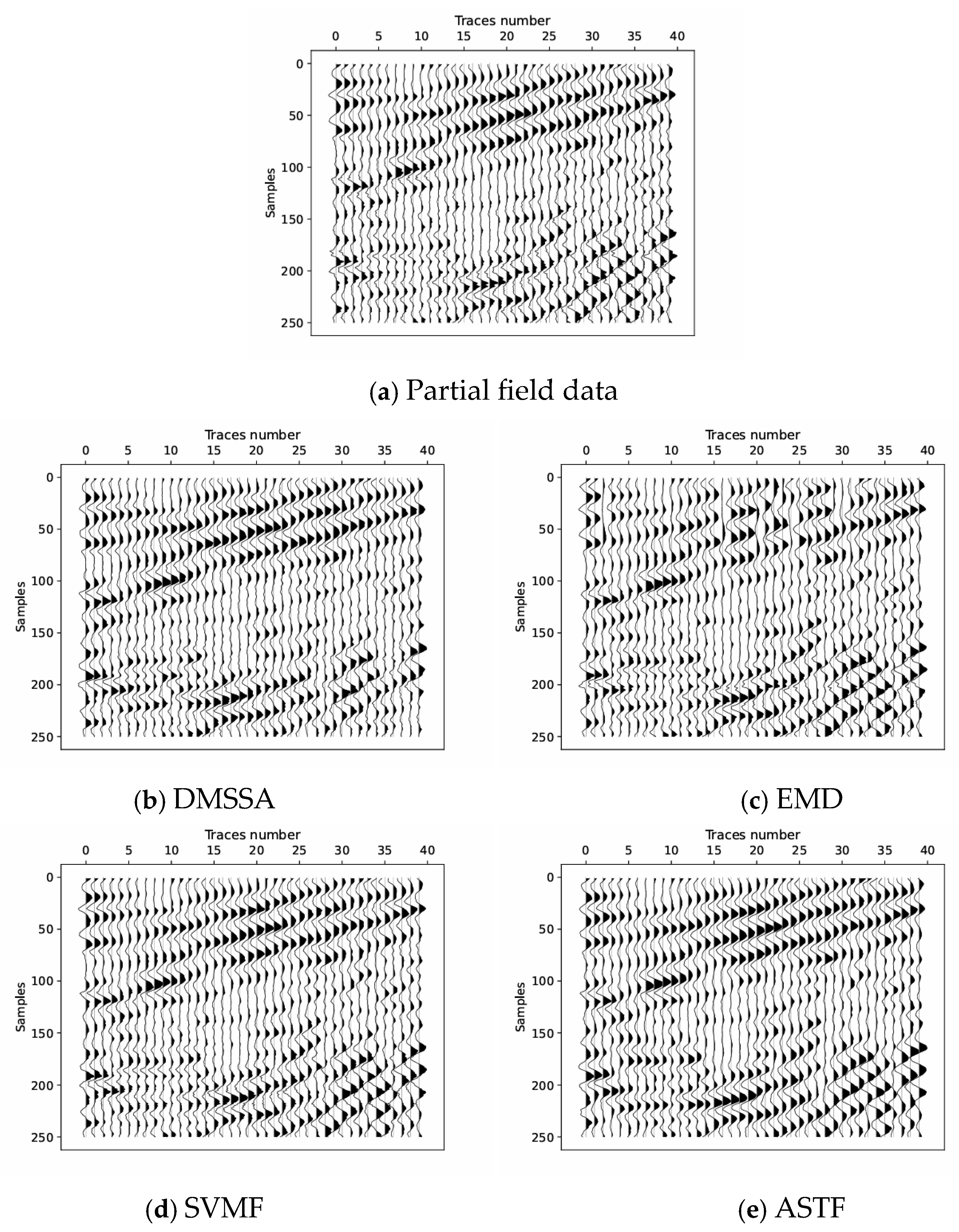 Experiments were conducted on the synthetic datasets and field seismic dataset. We compared ASTF with three effective methods, including damped multi-channel singular spectrum analysis (DMSSA) [28], empirical mode decomposition (EMD) [29] and space-varying median filter (SVMF) [30]. The results show that our method is more effective.
