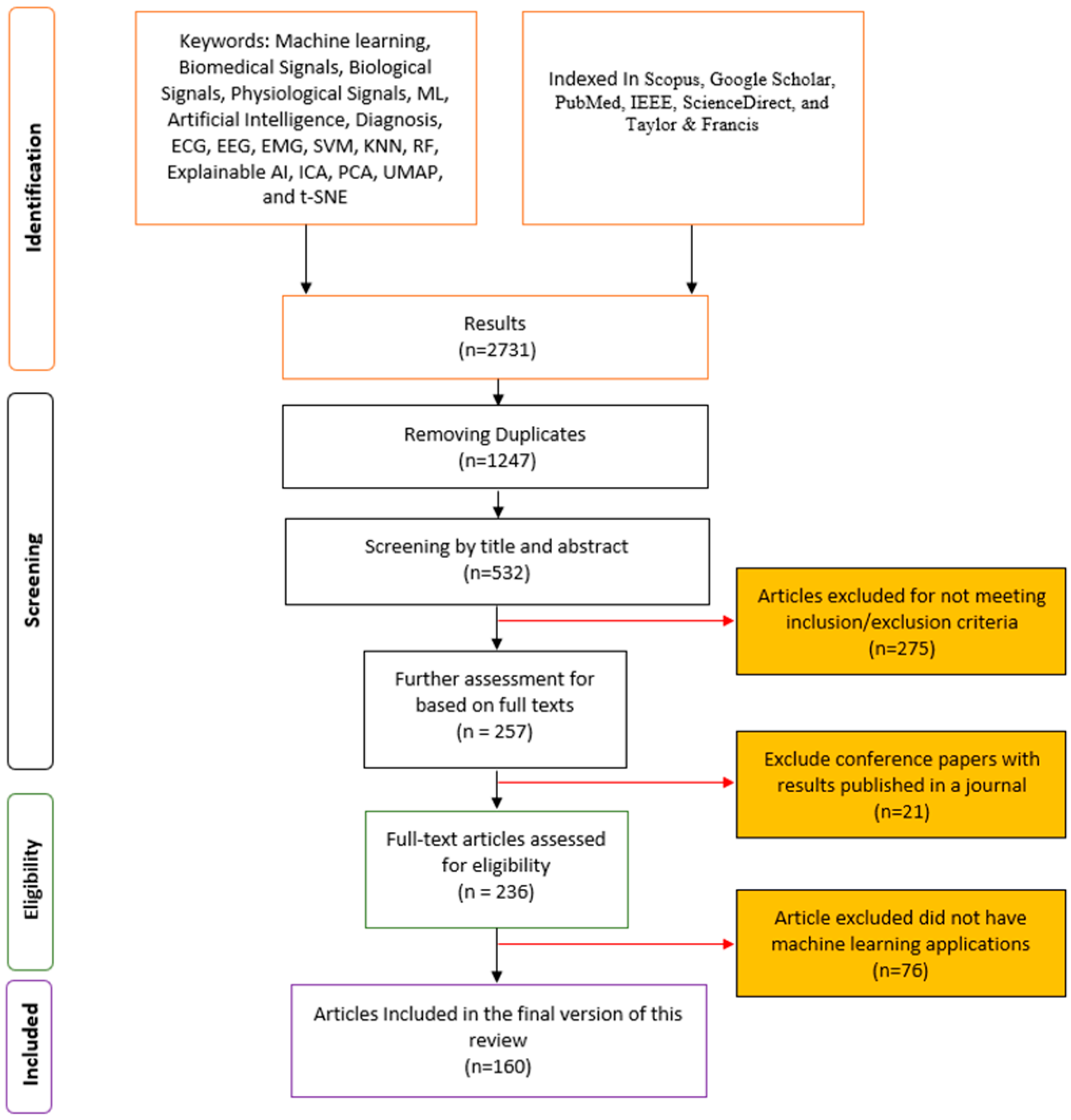 This review employed a systematic methodology to identify, evaluate, and synthesize literature on traditional machine learning (ML) applications in biomedical signal processing. The process was structured to ensure comprehensive coverage and robust analysis of the research landscape.