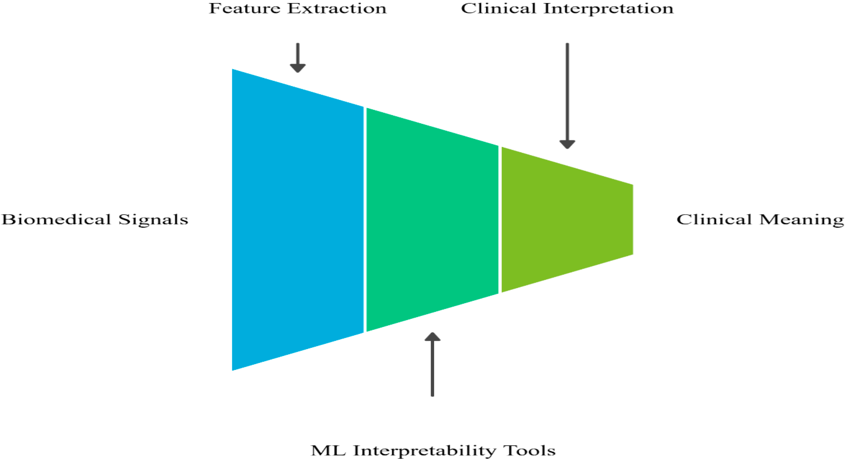 Unlike previous reviews that merely enumerate algorithms or feature types, this manuscript provides a critical synthesis linking methodological advances with interpretability and clinical implications. Figure 1 provides a cohesive framework for conceptualizing how physiologically meaningful features enhance model transparency, and how interpretable outputs can, in turn, guide improved feature design and clinical decision-making. Each subsequent section is framed around this tri-axis framework. Technical descriptions are followed by “Critical Insights” subsections that integrate methodological evaluation, interpretability considerations, and clinical relevance. This approach transforms the review from a descriptive catalog into an integrated, reflective synthesis that highlights unifying trends, exposes methodological and interpretability gaps, and proposes actionable directions for advancing trustworthy biomedical AI.