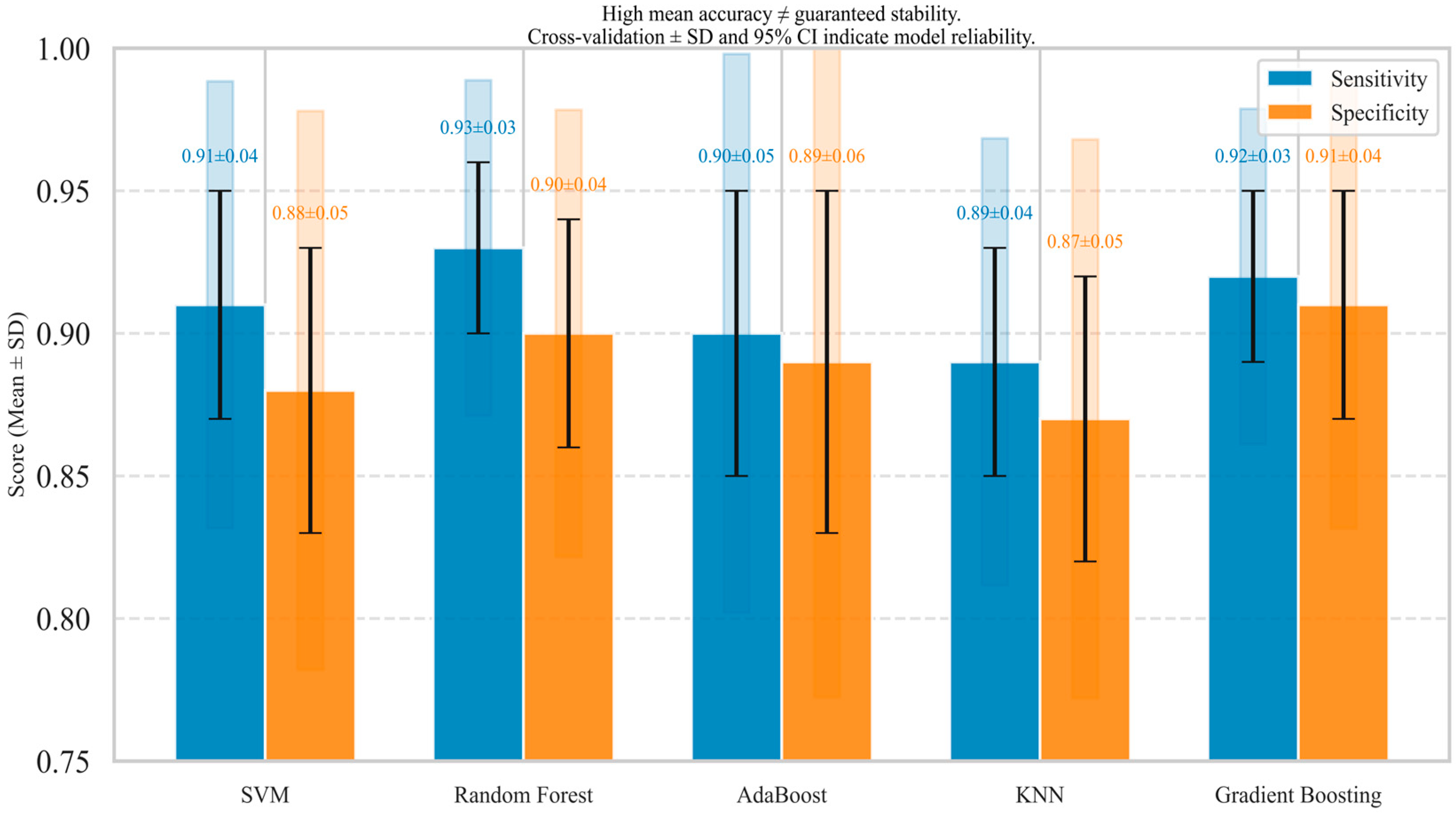 The training and deployment of deep learning models require significant computational power, often necessitating specialized hardware, such as GPUs. This can be a prohibitive barrier for real-time applications on wearable devices, point-of-care diagnostics, or in resource-limited clinical settings. Traditional ML algorithms, once features are extracted, are computationally lightweight and can run efficiently on standard hardware (CPUs) and even embedded systems [13,14]. This efficiency facilitates faster prototyping, easier deployment, and enables real-time analysis at the bedside.