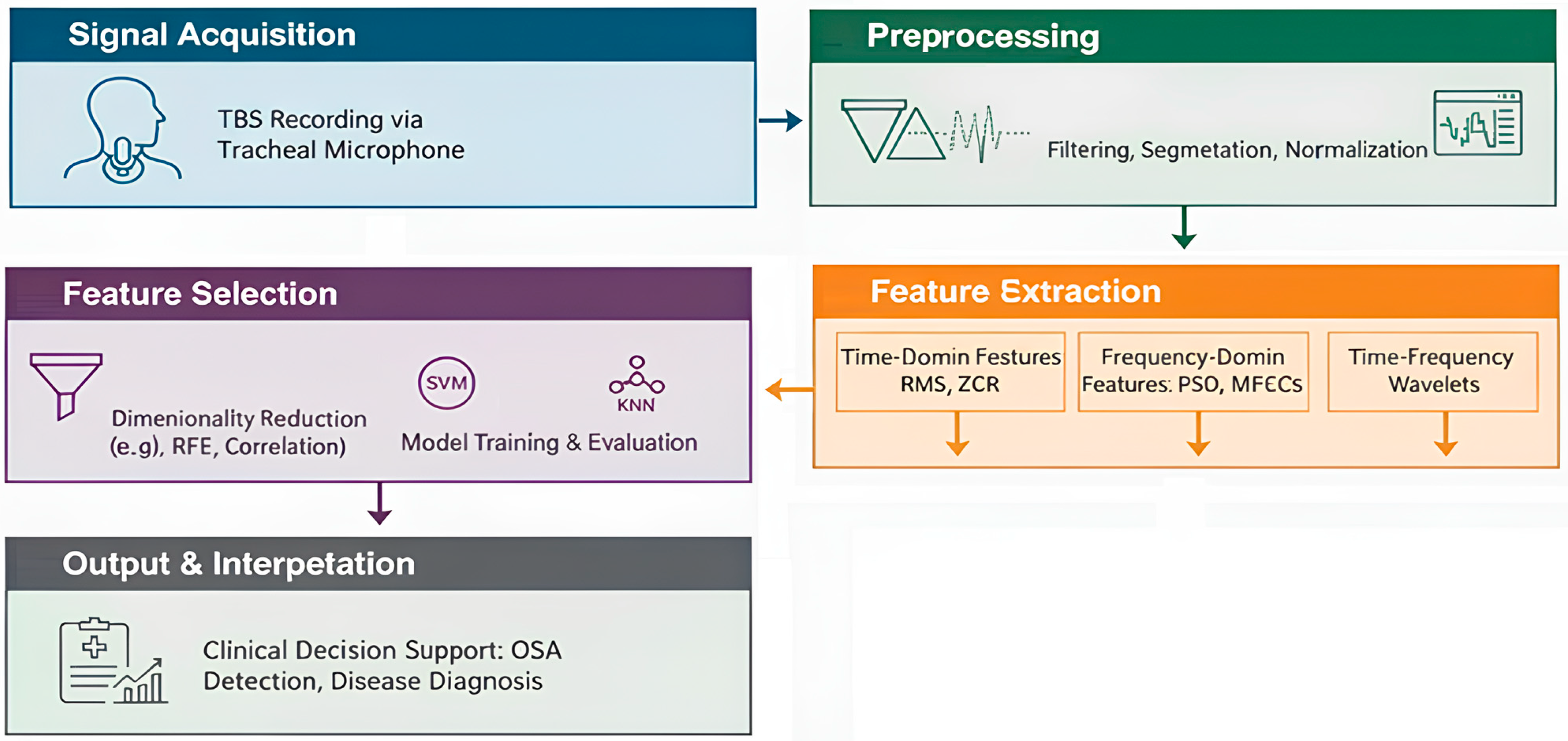 Signal AcquisitionMicrophone at suprasternal notch; band-pass filter (75–3000 Hz)Reduces low-frequency body noise, high-frequency artifacts