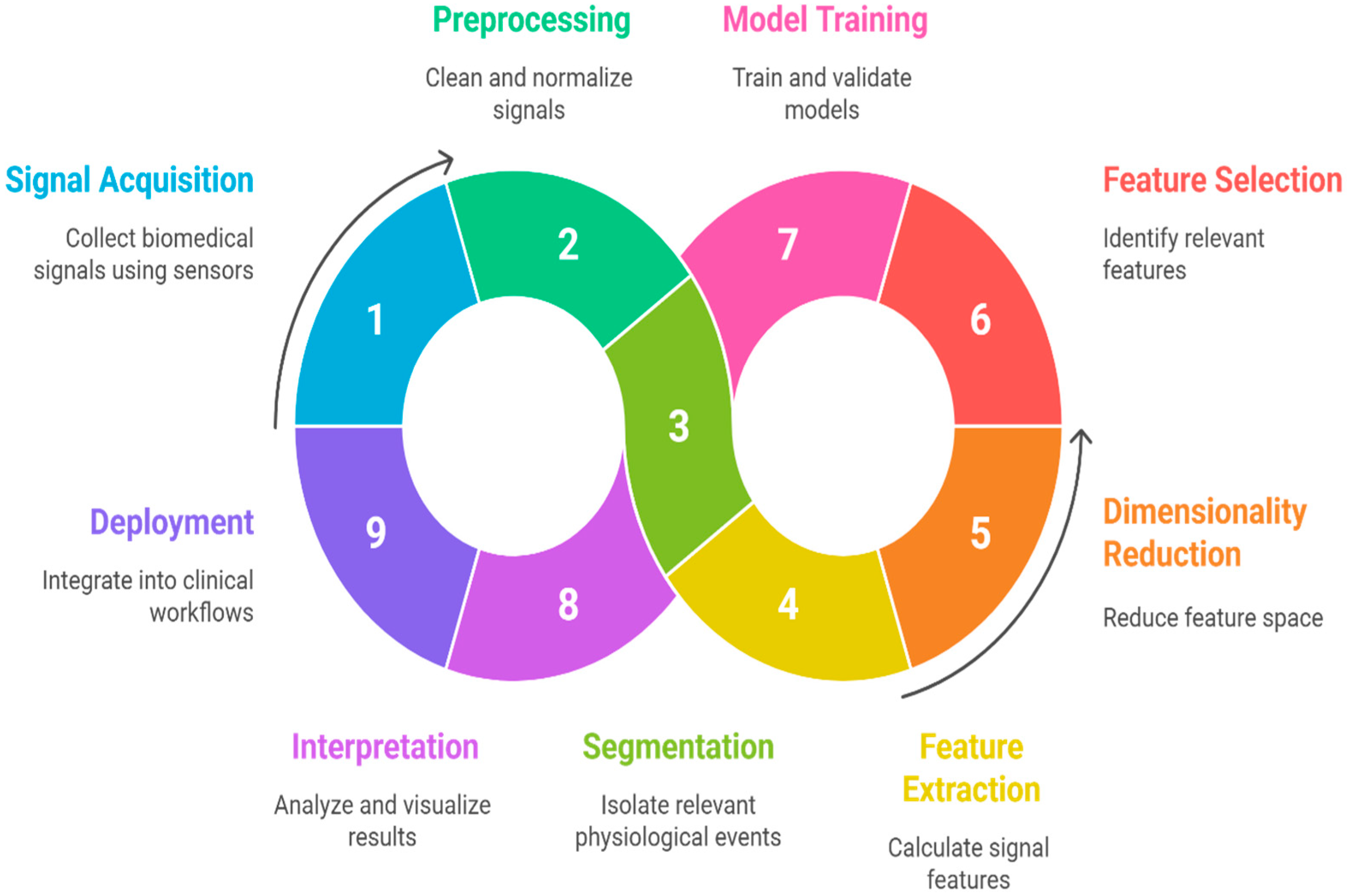 1. Feature Engineering: Extracting physiologically grounded descriptors reflecting the underlying biomedical mechanisms and improving signal-to-insight fidelity.