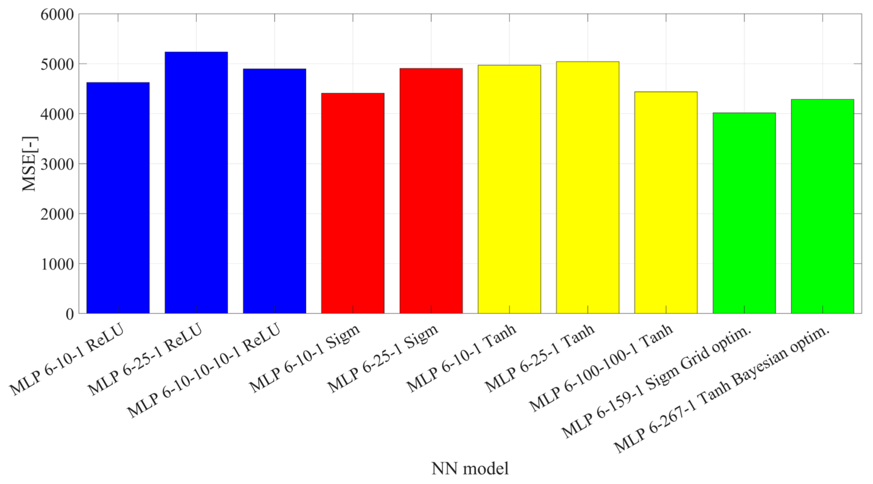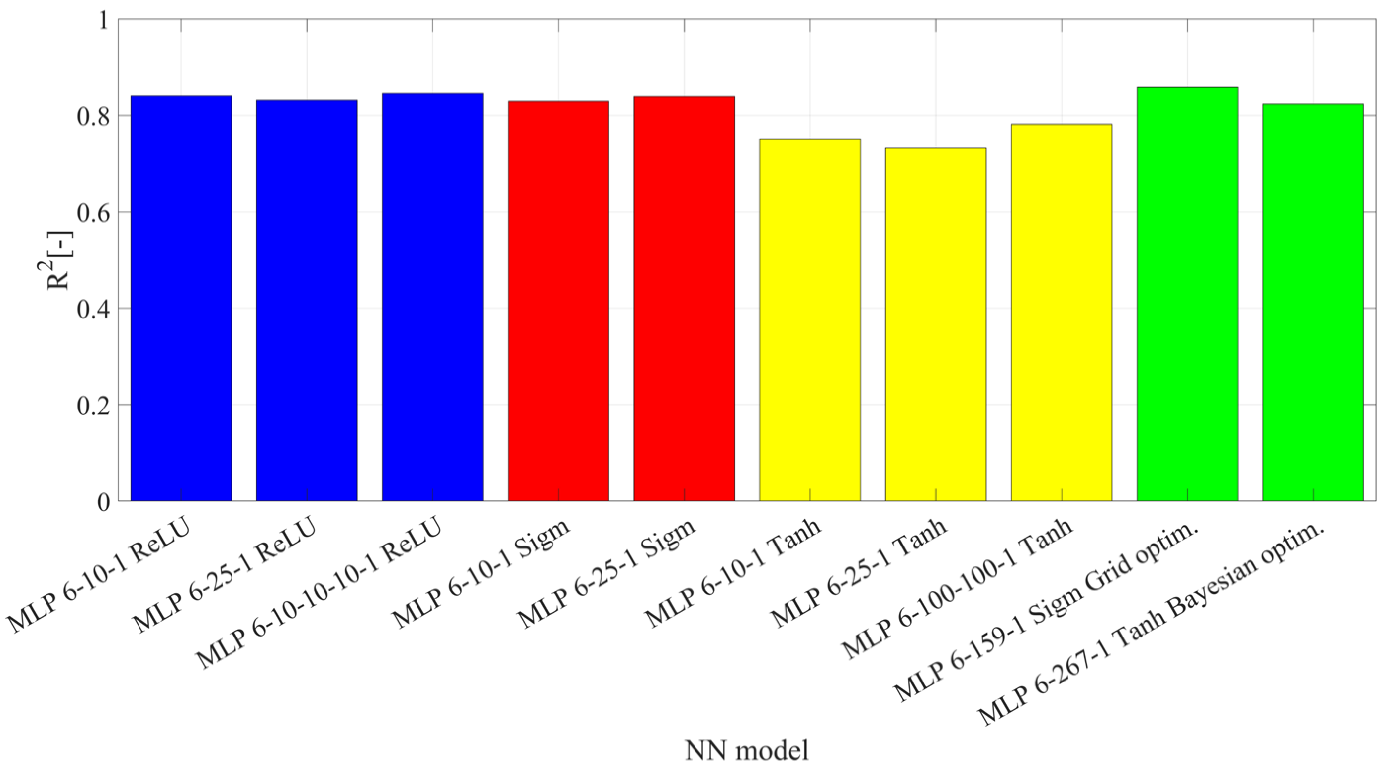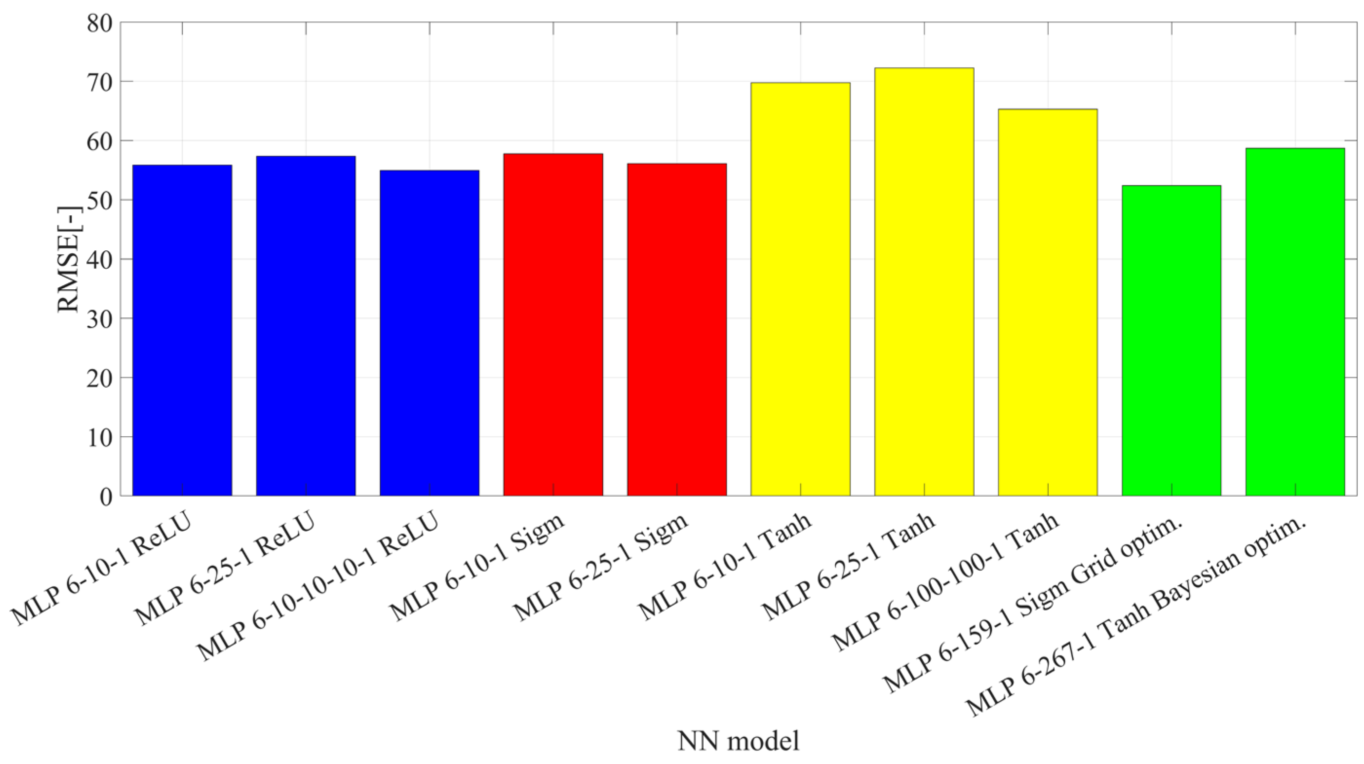- with identical activation function in each layer: sigmoid, hyperbolic tangent, ReLU,