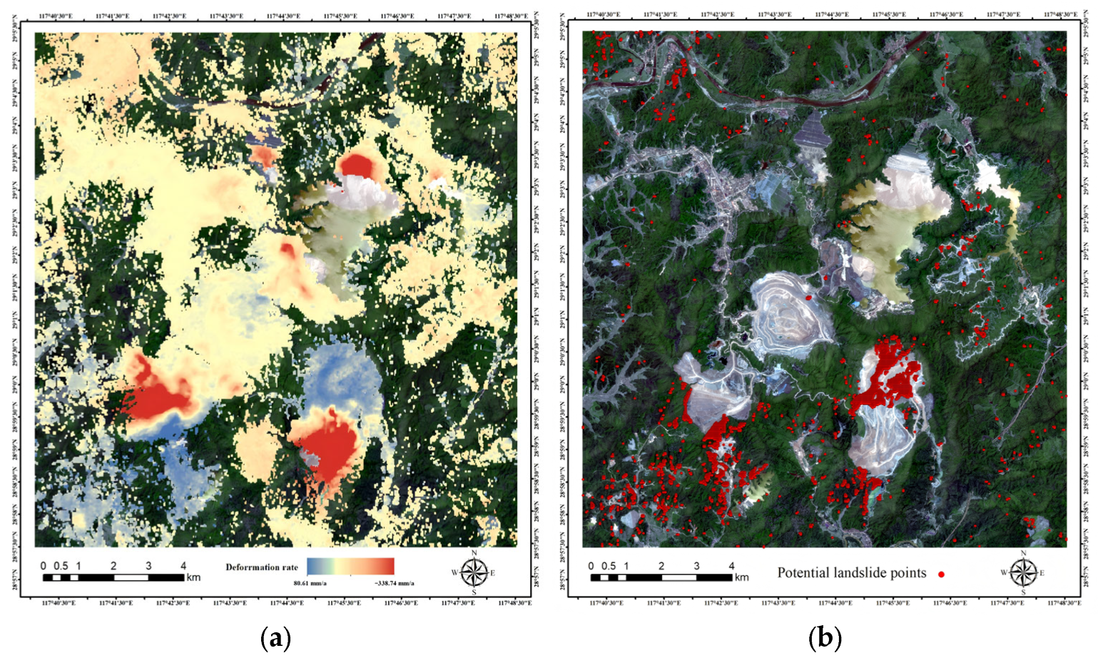 3.1. Deformation Analysis and Extraction of Potential Landslide Points in the Mining Area