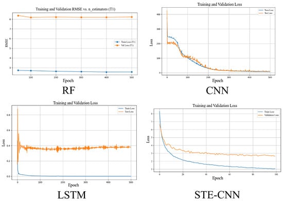 (2) Generalization Verification: This study uses hold-out validation to perform cross-validation to evaluate the model’s generalization ability. As shown in (Figure 10, Figure 11, Figure 12, Figure 13 and Figure 14) both CNN and the conventional STCNN exhibited a certain level of generalization, with STCNN demonstrating more stable training performance due to its spatiotemporal dual-stream architecture. Although Random Forest exhibited strong fitting ability, its lack of temporal modeling limited its predictive performance. LSTM demonstrated strong fitting capability but insufficient stability, with signs of overfitting in some groups. In contrast, the STE-CNN achieved shorter training times, lower errors, and fewer fluctuations. Its multi-scale spatiotemporal feature fusion mechanism improved prediction accuracy and robustness in landslide deformation modeling.
