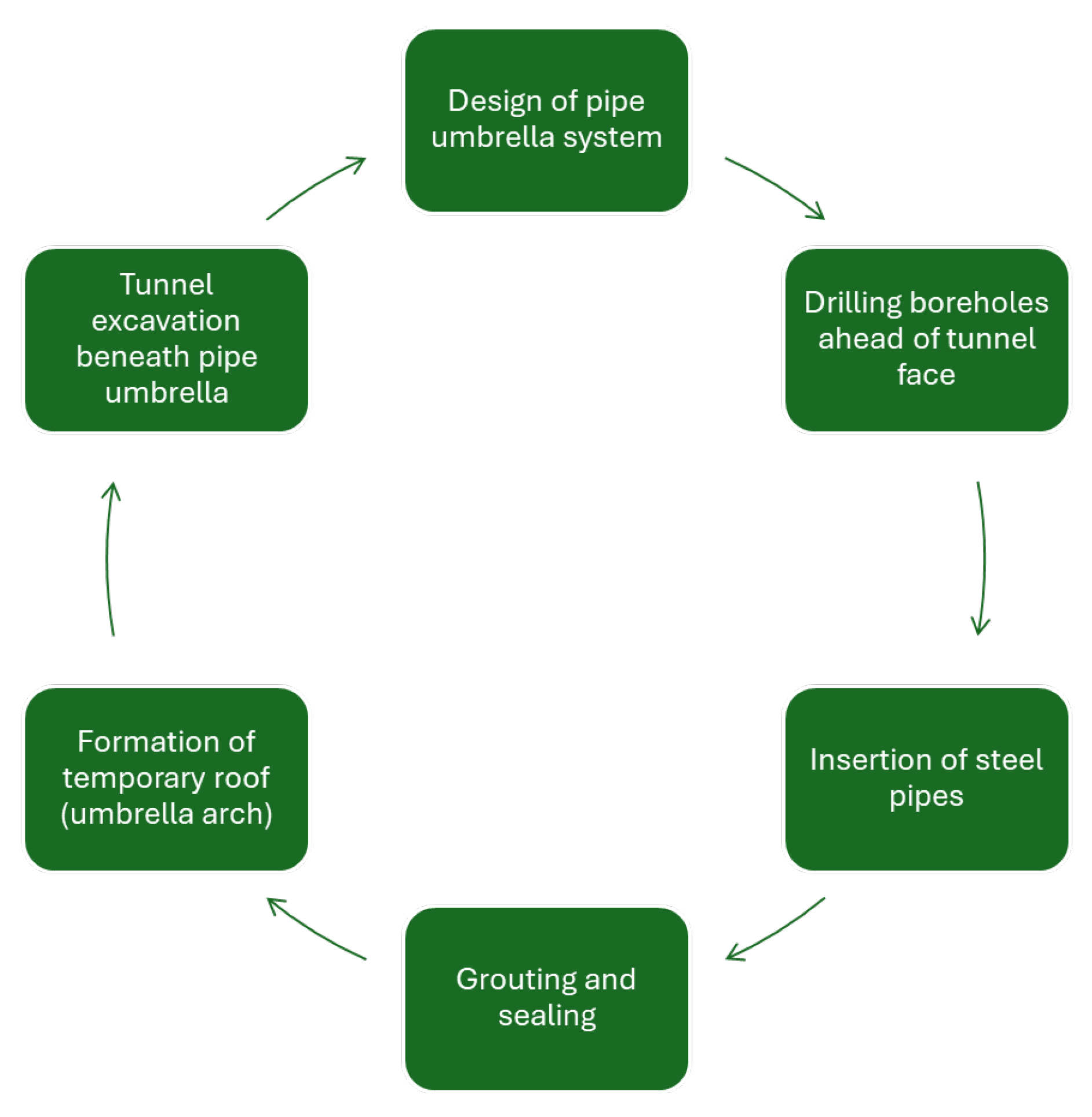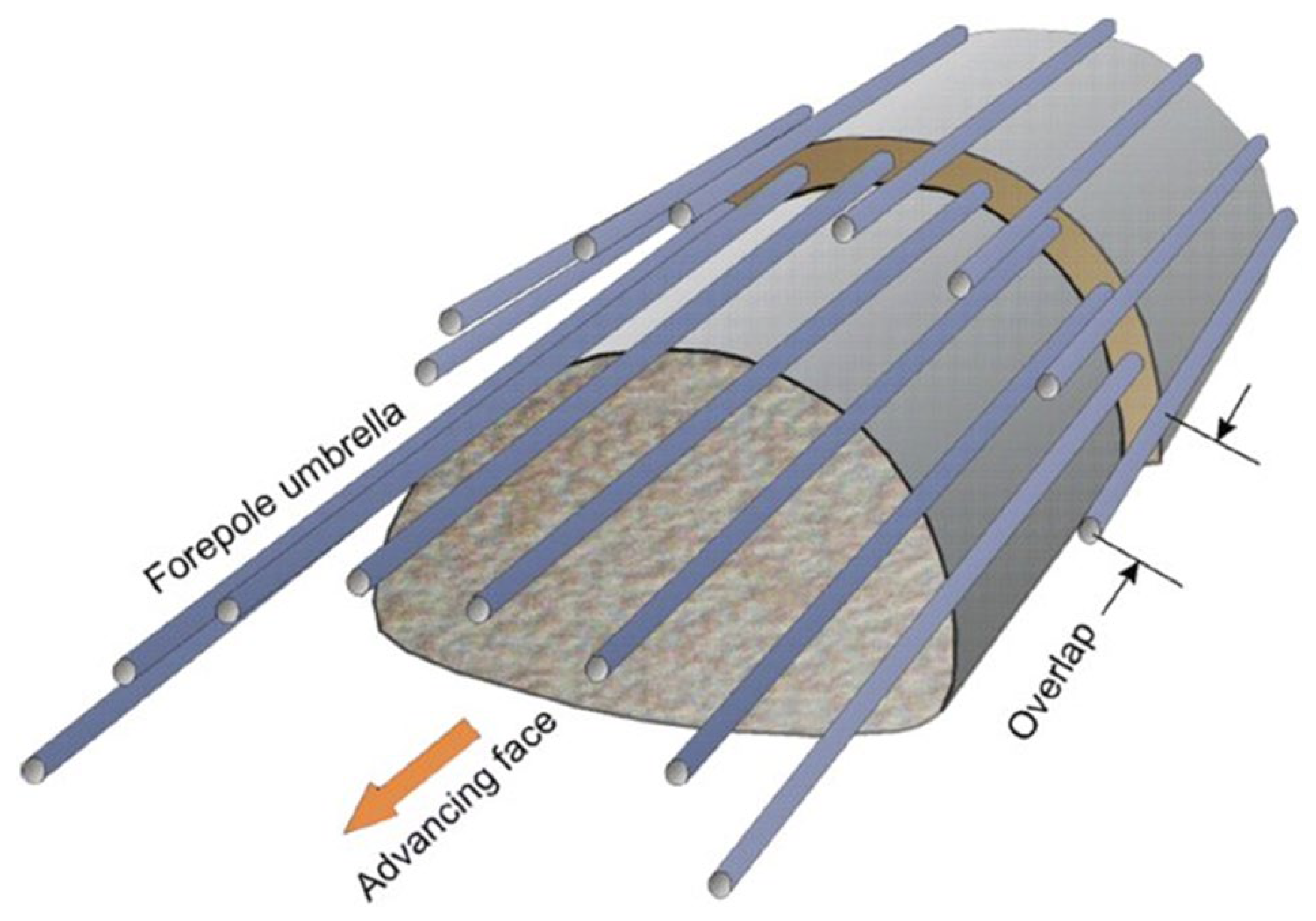 3.1. Pipe Umbrella as Method of Roof Support Prior to Excavation