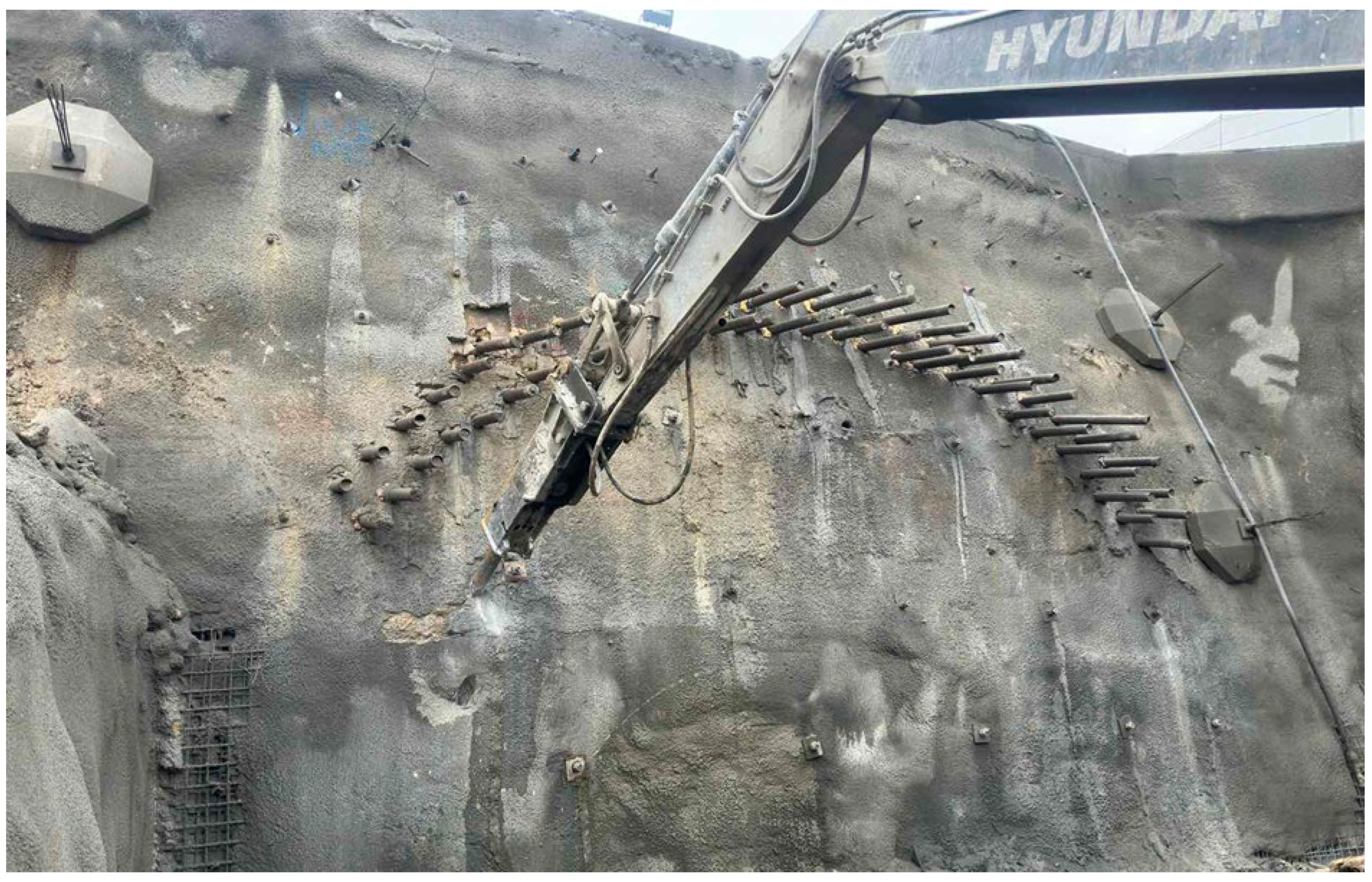 - Haundi, T.; Nangulama, H.K.; Mbewe, V.R. Site characterisation, deep basement support, construction, and deformation control. Geotech. Geol. Eng. 2024, 42, 1611–1622. [Google Scholar] [CrossRef]