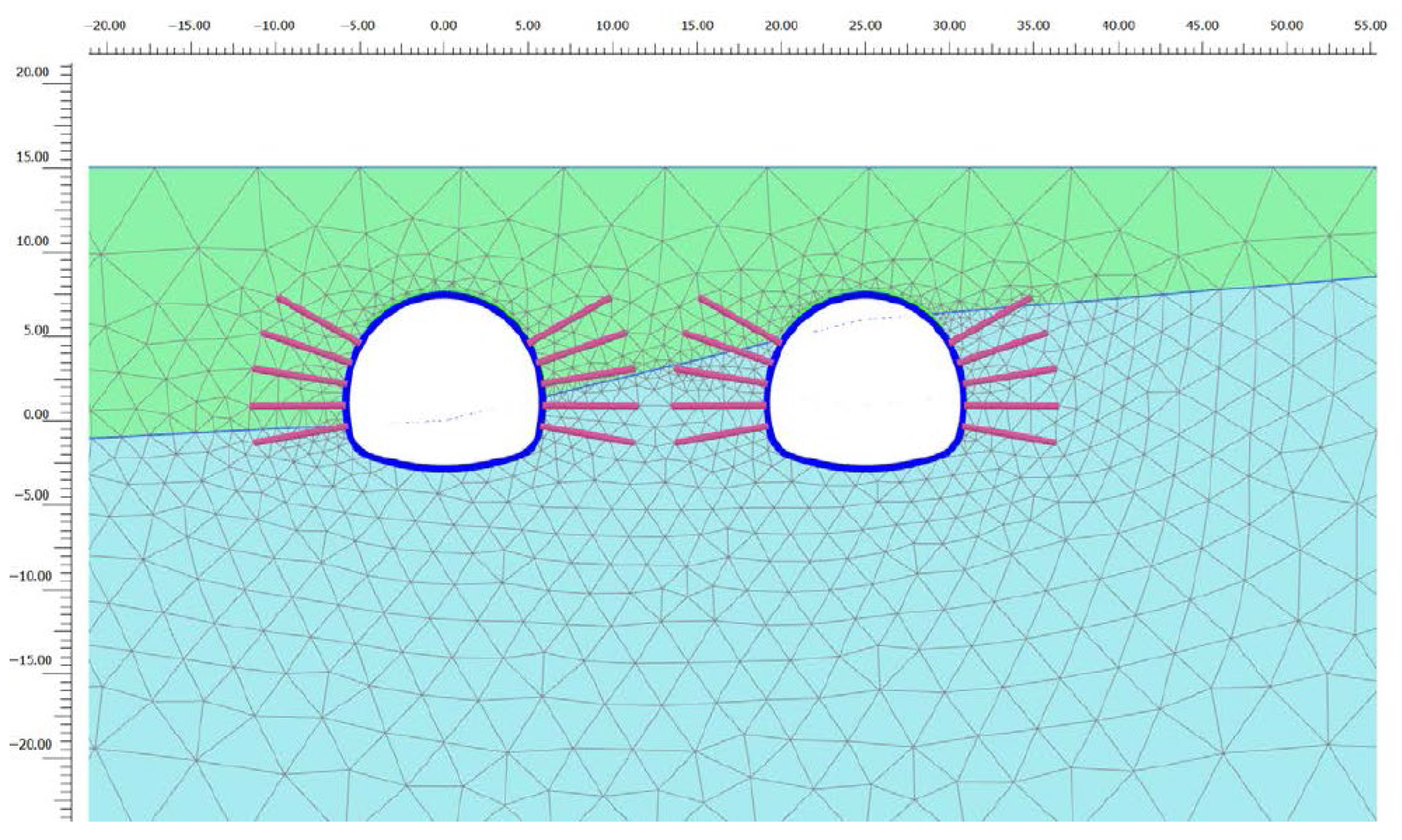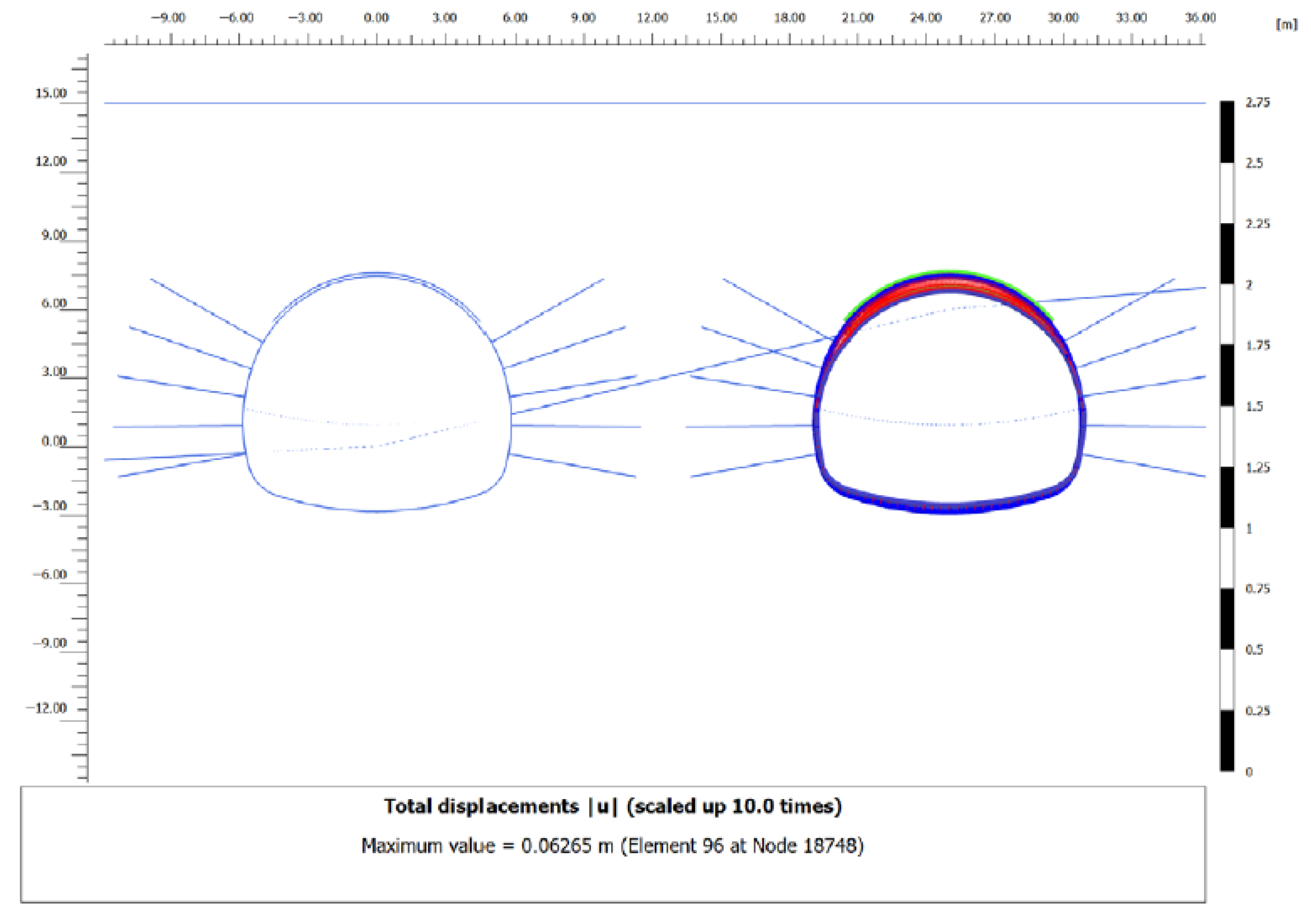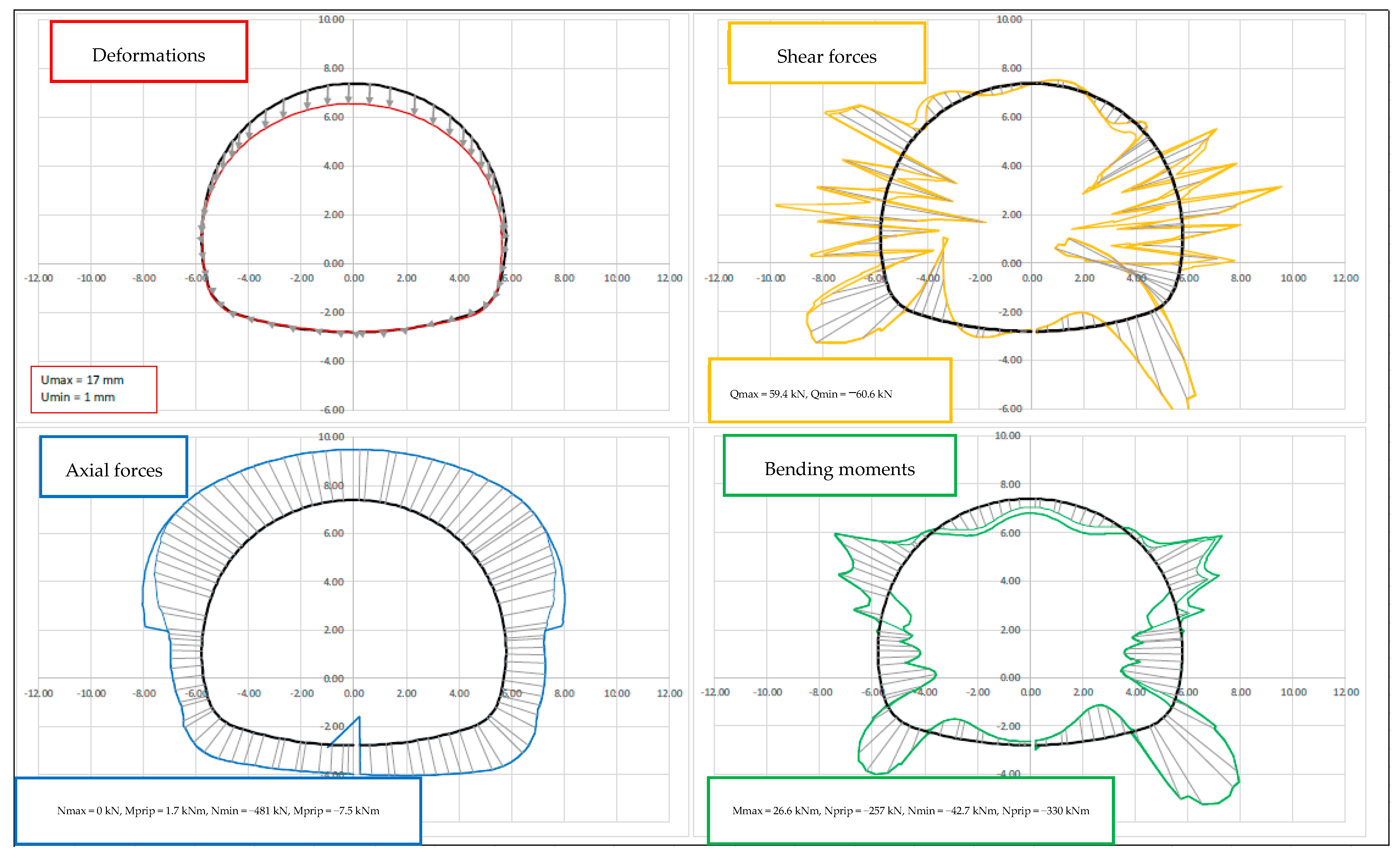 - Bektašević, E.; Gutić, K.; Kadrić, R.; Kadrić, S.; Sikira, D. Deformation analysis during tunnel excavation in poor rock mass. In Proceedings of the 8th International Conference on Road and Rail Infrastructures–CETRA, Cavtat, Croatia, 15–17 May 2024; pp. 799–805. [Google Scholar]