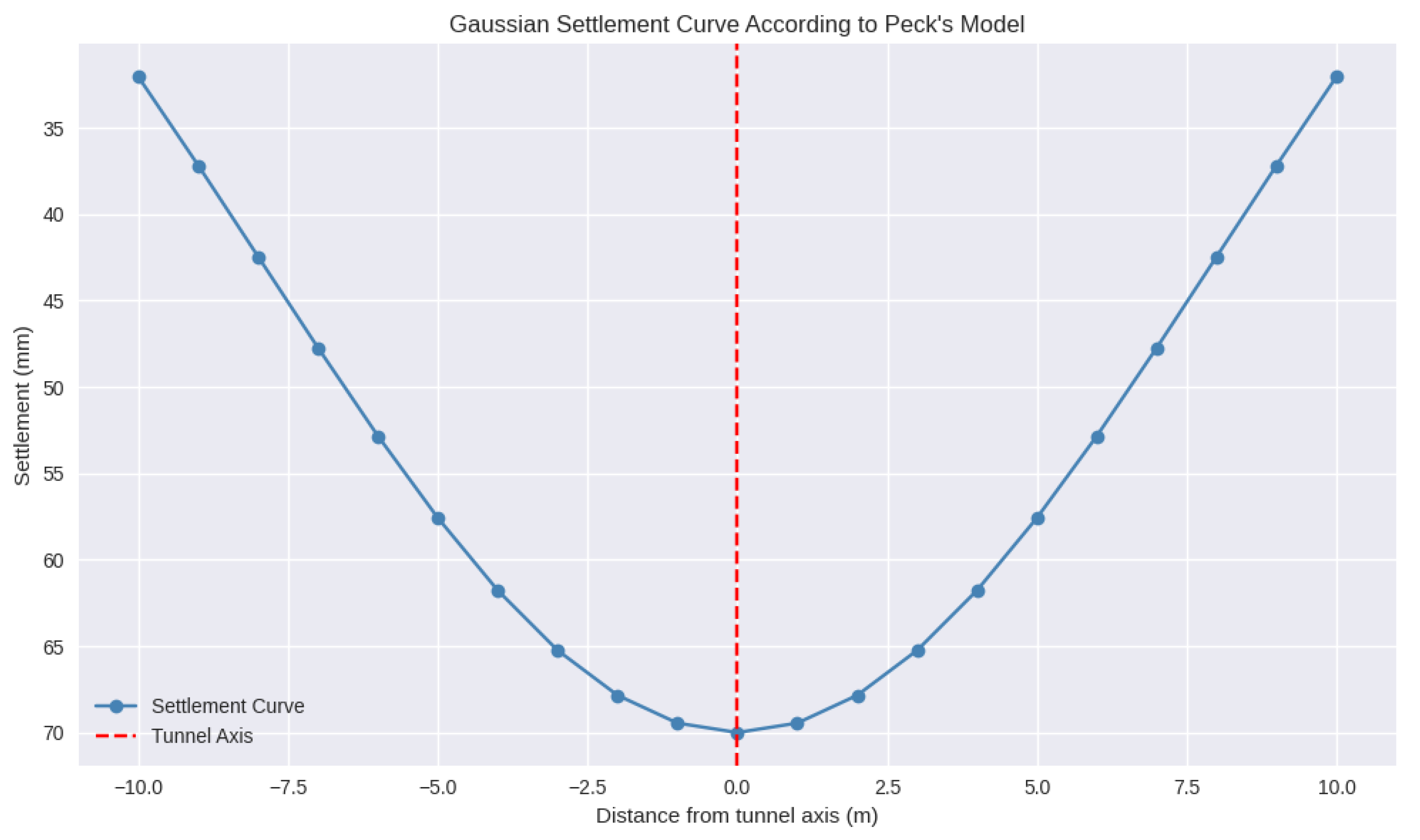 | Distance From the Tunnel Axis, x (m) | Calculated Settlement, S(x) (mm) |