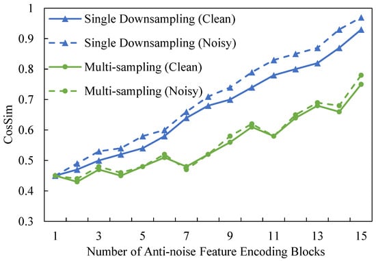 The workflow of the sampling module is illustrated in Figure 2. We propose a downsampling module that integrates average pooling with dilated convolution. First, average pooling serves as an effective anti-aliasing filter by attenuating signal components above the target Nyquist frequency, thereby substantially reducing spectral aliasing in subsequent processing stages. The subsequent dilated convolution then performs feature extraction from the low-resolution representation while systematically expanding the receptive field. Crucially, unlike fixed averaging operations, the dilated convolution employs learnable kernel parameters that enable the model to adaptively discover optimal feature integration patterns directly from training data. The downsampled vectors then undergo high-level semantic feature modeling in the anti-noise feature-encoding block at this lower sampling rate.