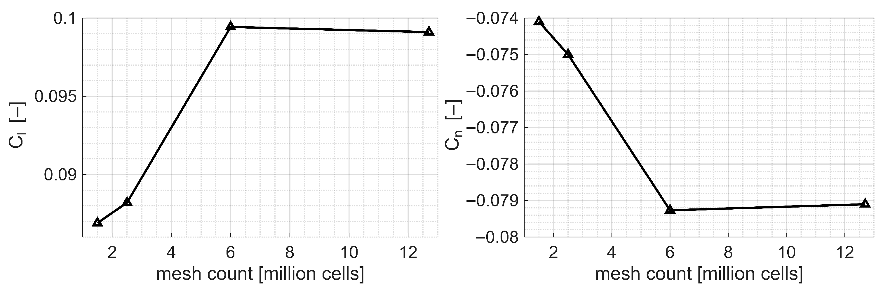 - Granata, D.; Savino, A.; Zanotti, A. Numerical Evaluation of Aircraft Aerodynamic Static and Dynamic Stability Derivatives by a Mid-Fidelity Approach. Aerospace 2024, 11, 213. [Google Scholar] [CrossRef]