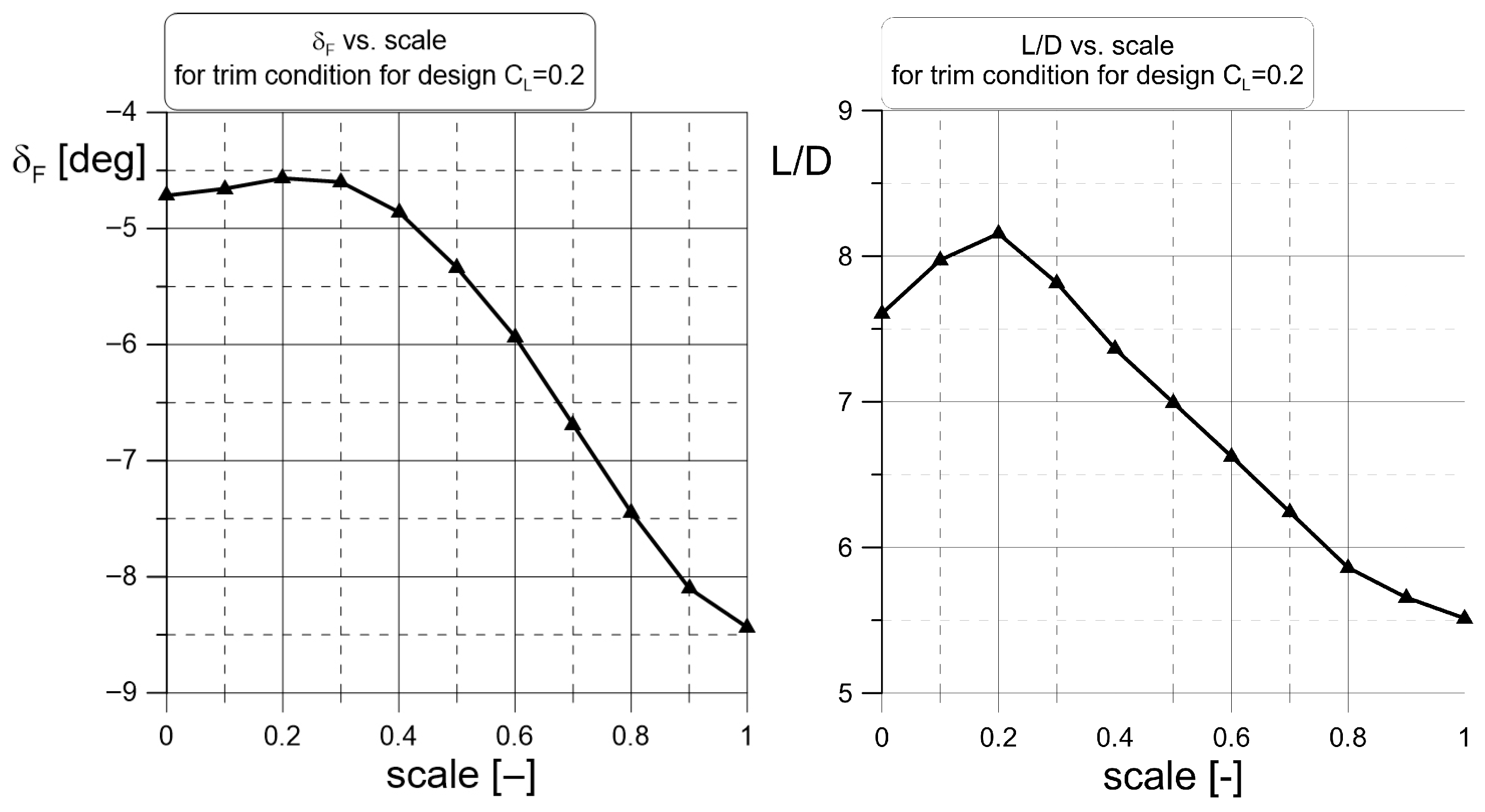 - Goetzendorf-Grabowski, T.; Marcinkiewicz, E.; Galiński, C. Comparison of traditionally calculated stabilitycharacteristics with flight test data of PW-6U sailplane. In Proceedings of the 4th CEAS Air & Space Conference, Linköping, Sweden, 16–19 September 2013; pp. 536–543. [Google Scholar]