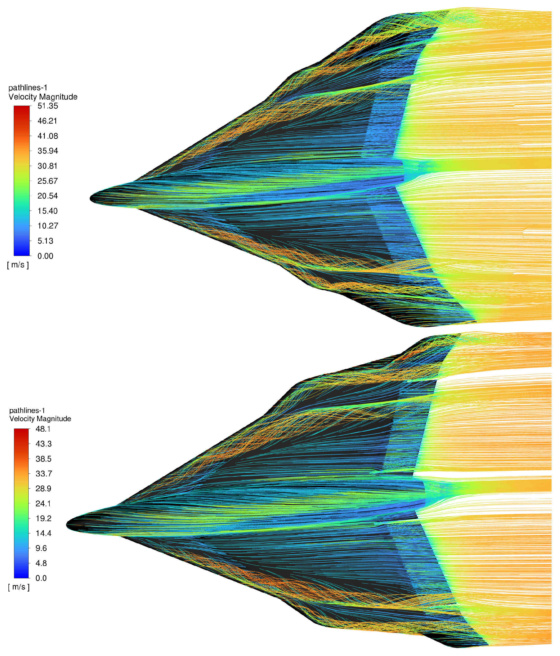 - Ruffels, W.R.; Dakka, S. Aerodynamic flow characteristics of utilizing delta wing configurations in supersonic and subsonic flight regimes. J. Commun. Comput. 2016, 13, 299–318. [Google Scholar] [CrossRef][Green Version]