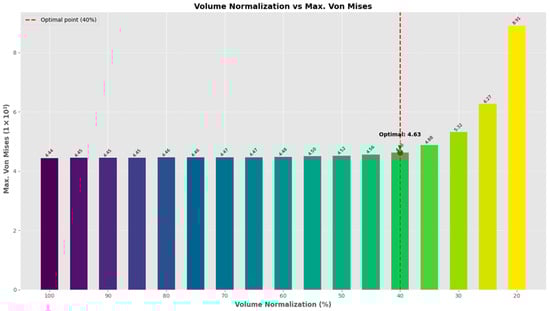 Maximum von Mises stress vs. volume normalization for the topology of the limited area to be optimized.