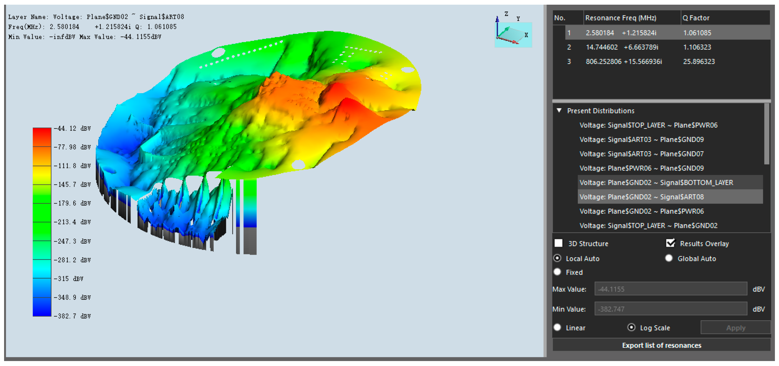 Simulation Tools: Cadence Sigrity PowerSI 2022, Speed 2000 2022.