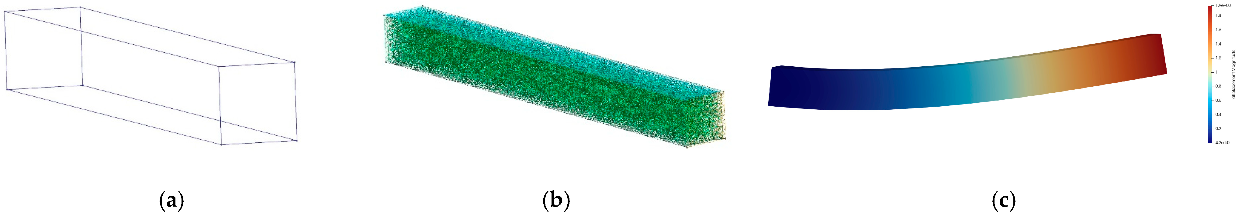 For executed simulations, we compared displacement fields against reference solutions, with <1% maximum nodal error considered ‘Excellent’ per NAFEMS benchmarking standards [30].