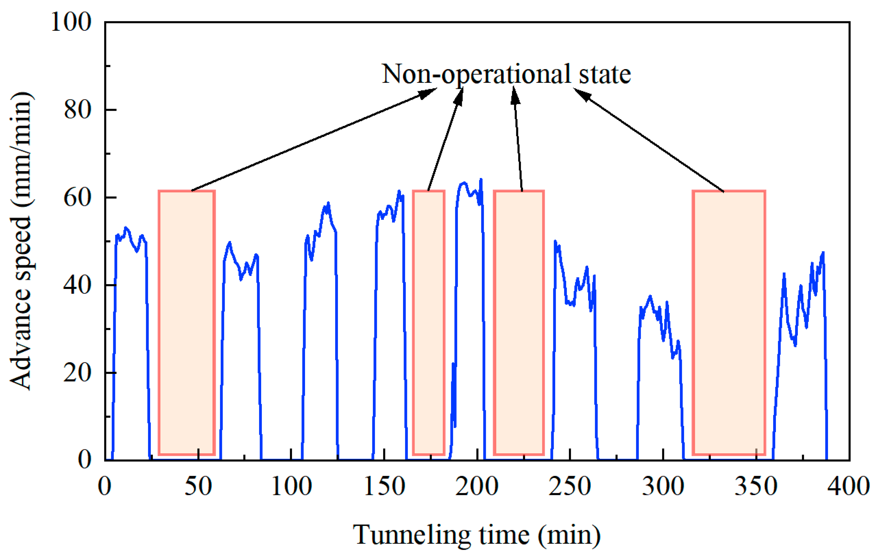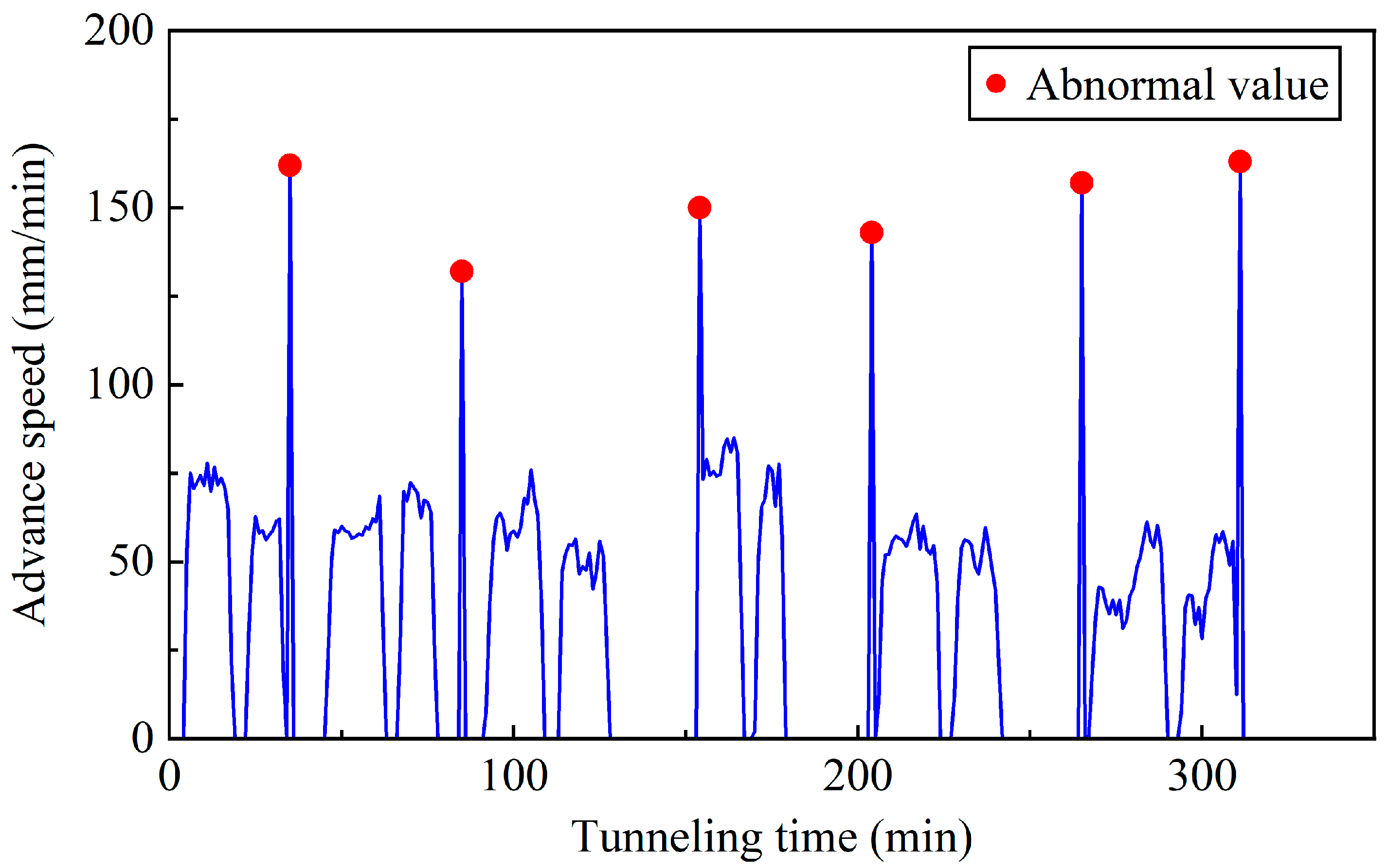 - Through correlation analysis, seven TBM construction parameters that significantly impact advance speed were selected, including TBM inclination, penetration rate, total thrust, cutterhead speed, cutterhead torque, propulsion pump pressure, and main belt conveyor drive pressure.