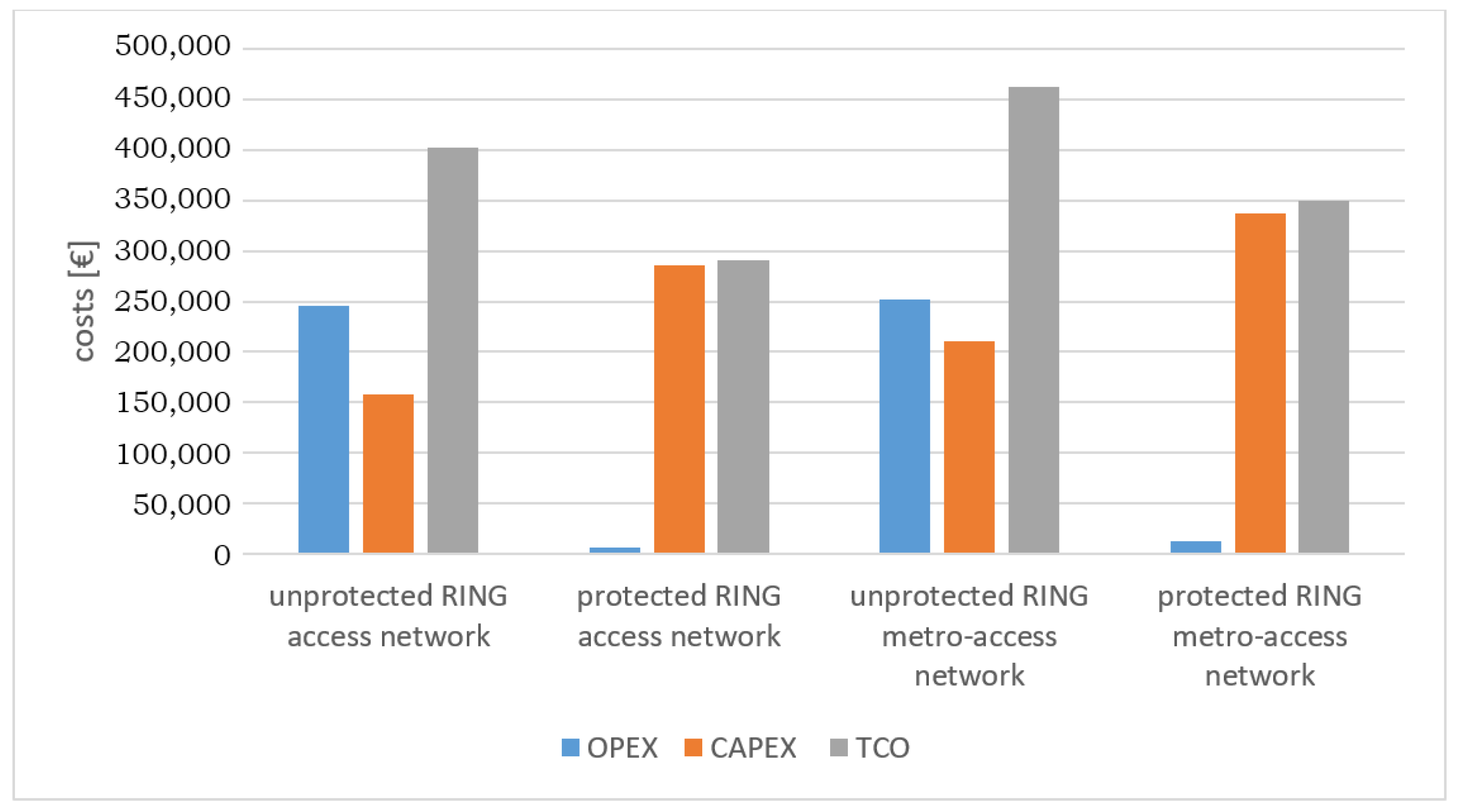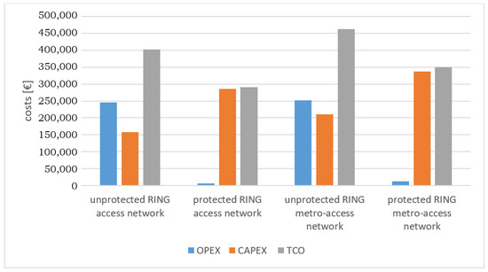 | Unprotected ring metro-access network | 252,322.54 | 210,809.80 | 463,132.34 |