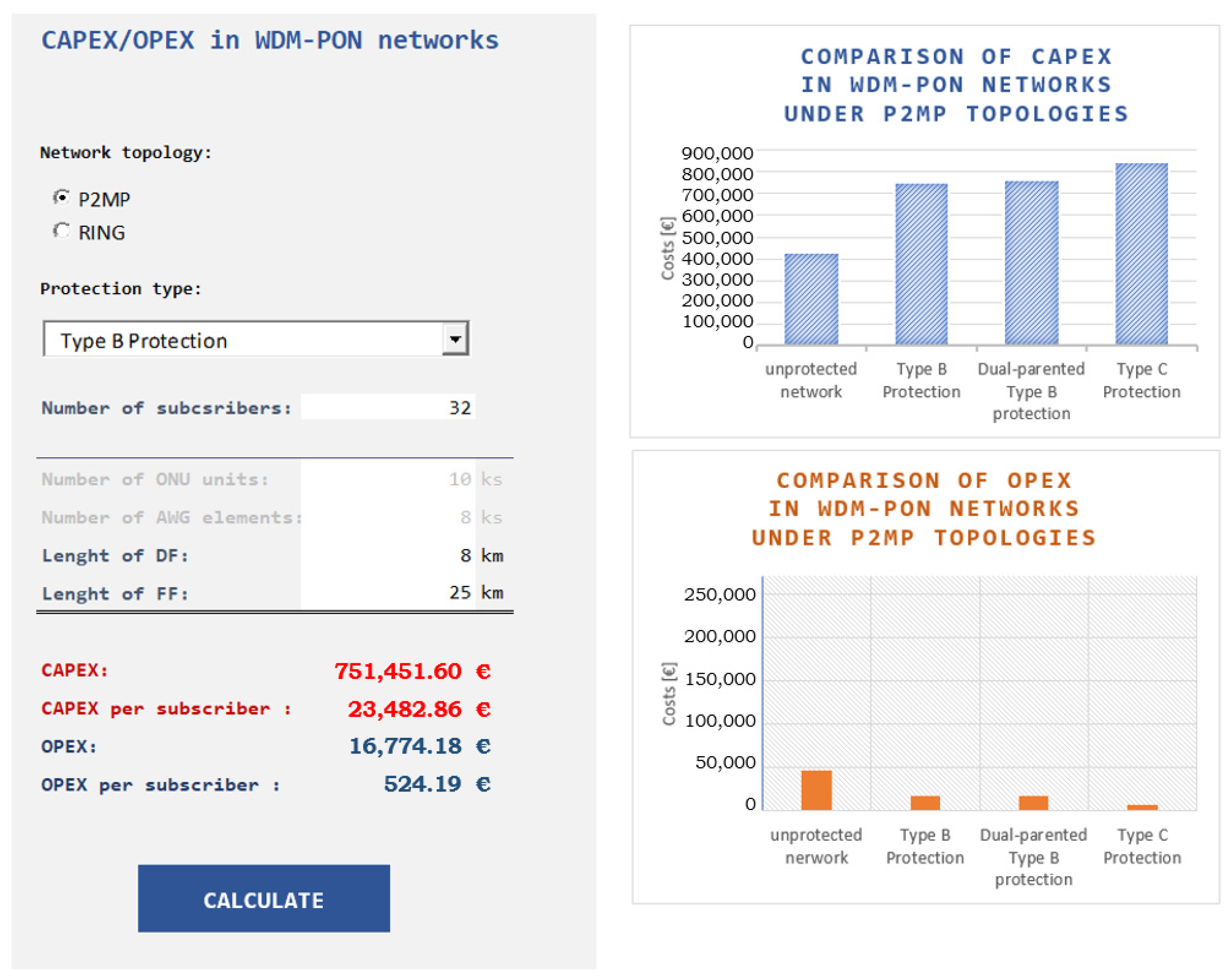 | Type B protected P2MP access network | 16,774.18 | 751,451.60 | 768,225.78 |
