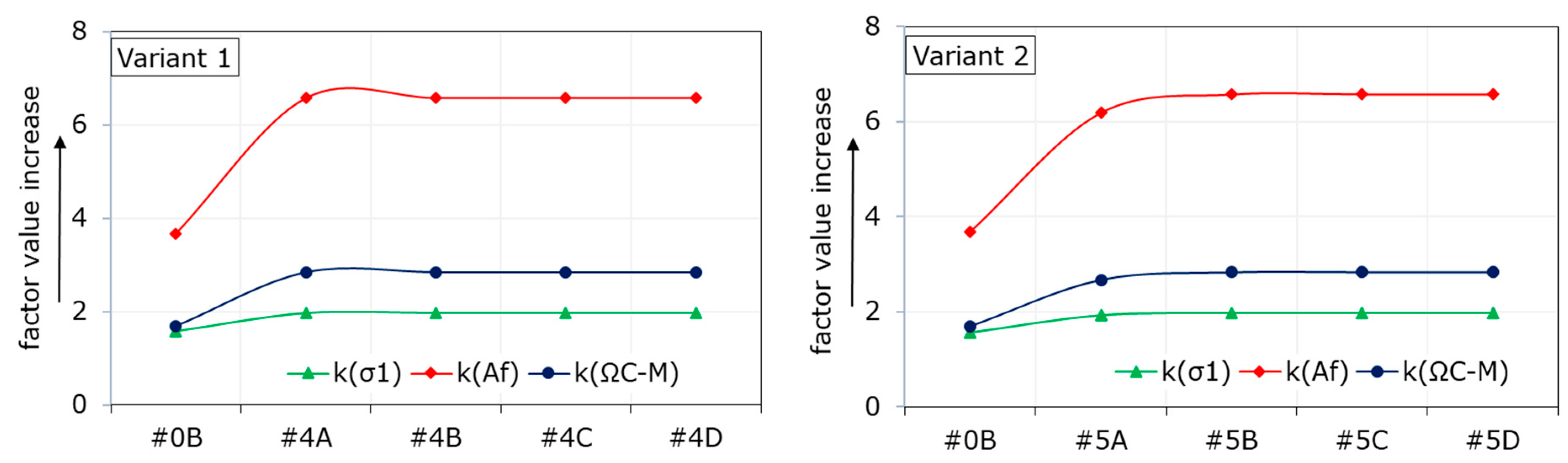 - Variant 2: May have a smaller scale of percentage increases in the maximum values of computational indicators, favouring the initiation of effort processes for the initial stage of the face advance (Model 5B).