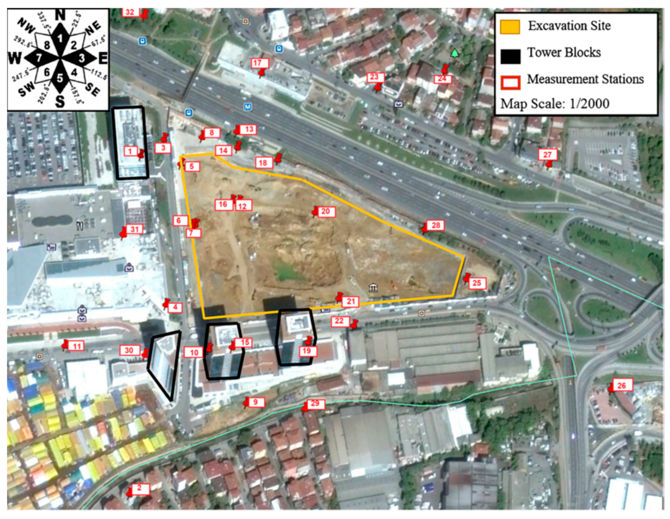 Finally, the model’s applicability is also constrained by the environmental conditions of the site. There is dense urbanization around the excavation site (as shown in