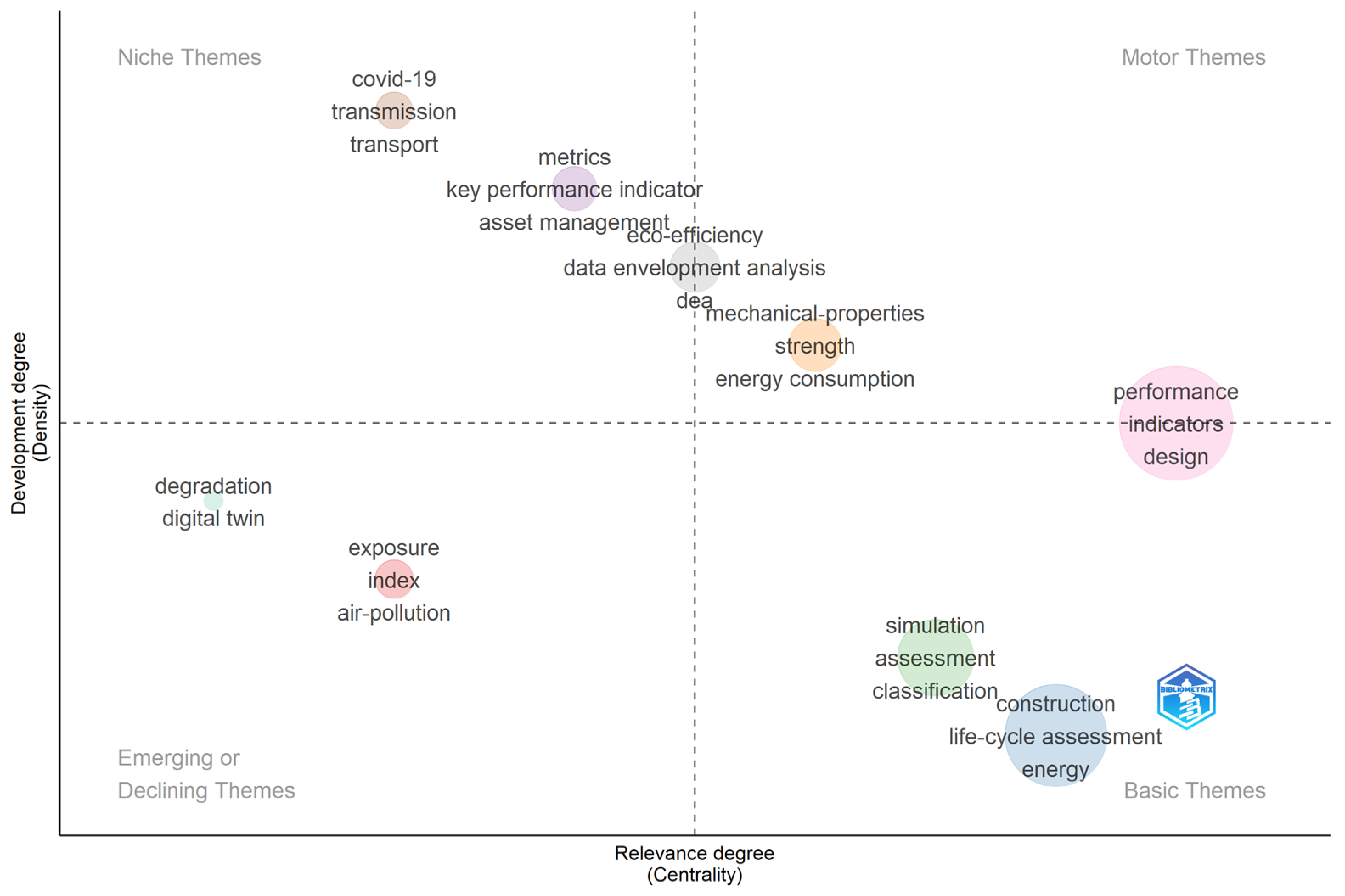 - Brown Cluster: sustainability impacts, construction, circular economy, innovation