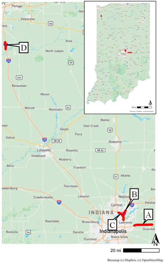 - The subsequent I-69 deployments (Figure 3, Location B) were only deployed in the southbound direction, and assessment was performed from 15 January 2025 [] through 11 July 2025.