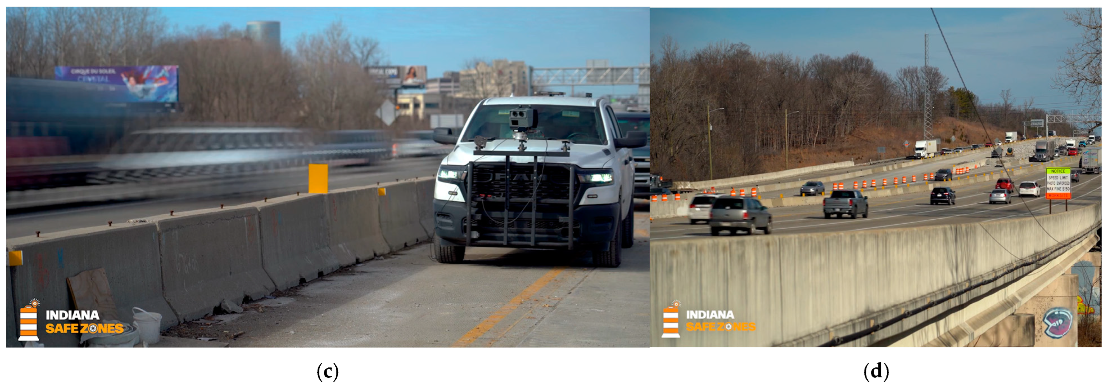 31. INDOT Announces Expansion of Worksite Speed Control Pilot. Available online: https://www.safezonesin.com/copy-of-press-release-4 (accessed on 21 July 2025).