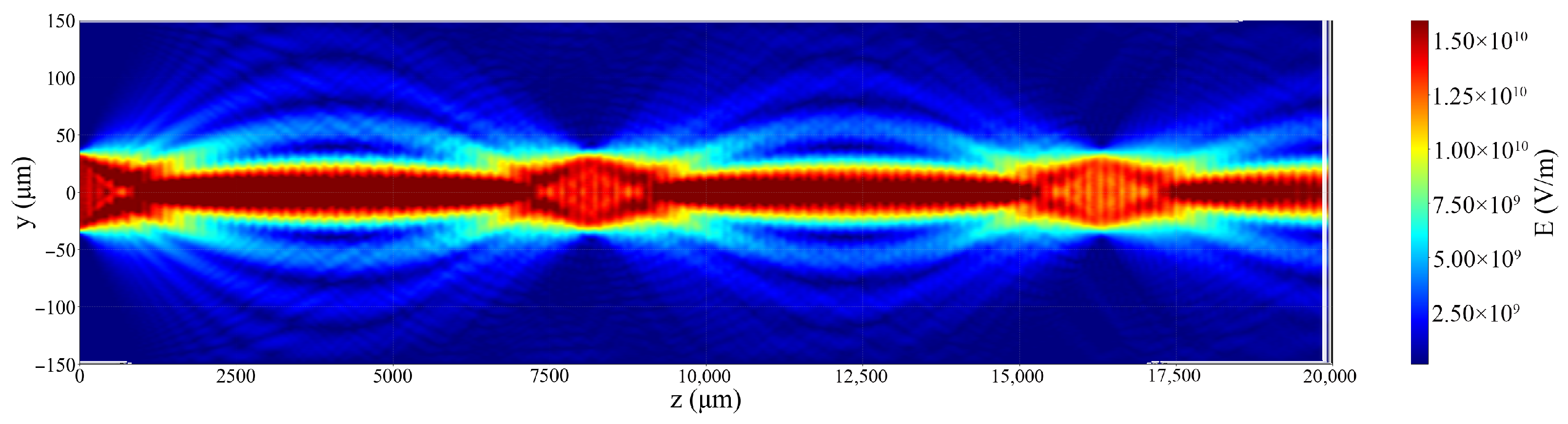 - Spence, D.J.; Hooker, S.M. Investigation of a hydrogen plasma waveguide. Phys. Rev. E 2000, 63, 015401. [Google Scholar] [CrossRef] [PubMed]