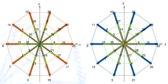 Using the Park transform, the entire set of possible switching states can be projected onto the planes and x − y, resulting in Figure 2.