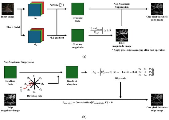 Edge image generation for use as a weak label (a) Overall process (b) Non-maximum suppression process.