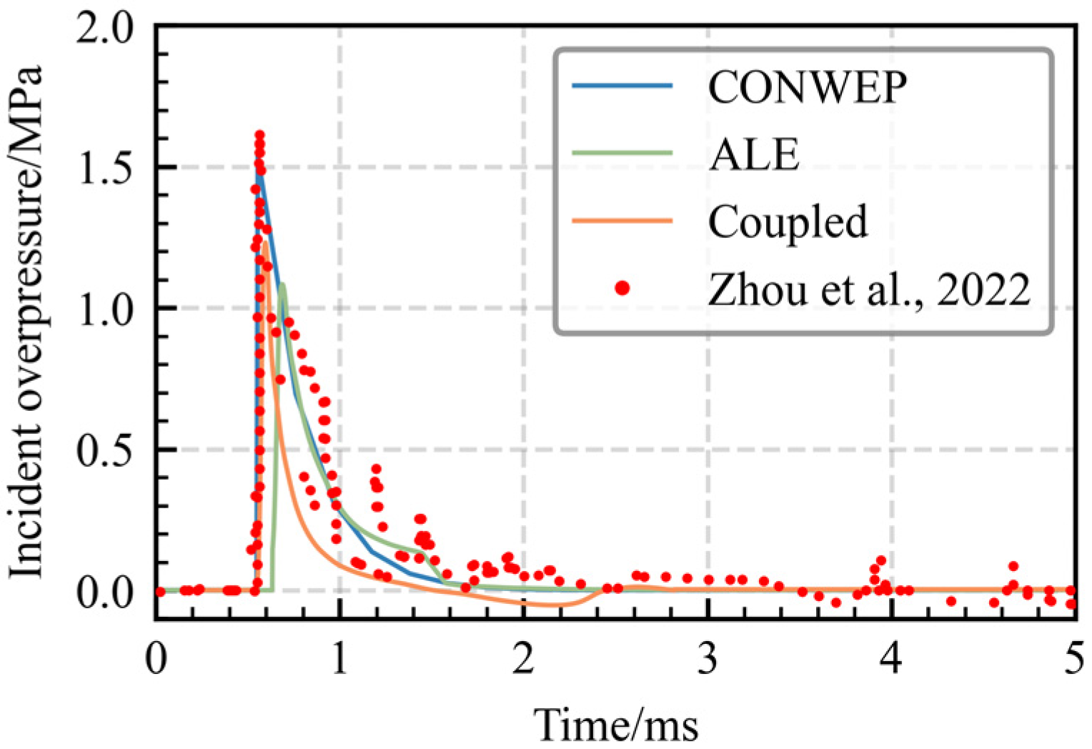 In summary, while the coupled algorithm inherits the inherent limitations of the CONWEP model for scenarios involving significant confinement, it avoids the prohibitive computational cost of a full-scale ALE simulation of the entire environment. This positions the CONWEP-ALE coupling algorithm as a balanced and efficient solution for a wide range of practical engineering scenarios where accuracy and computational cost are both paramount.