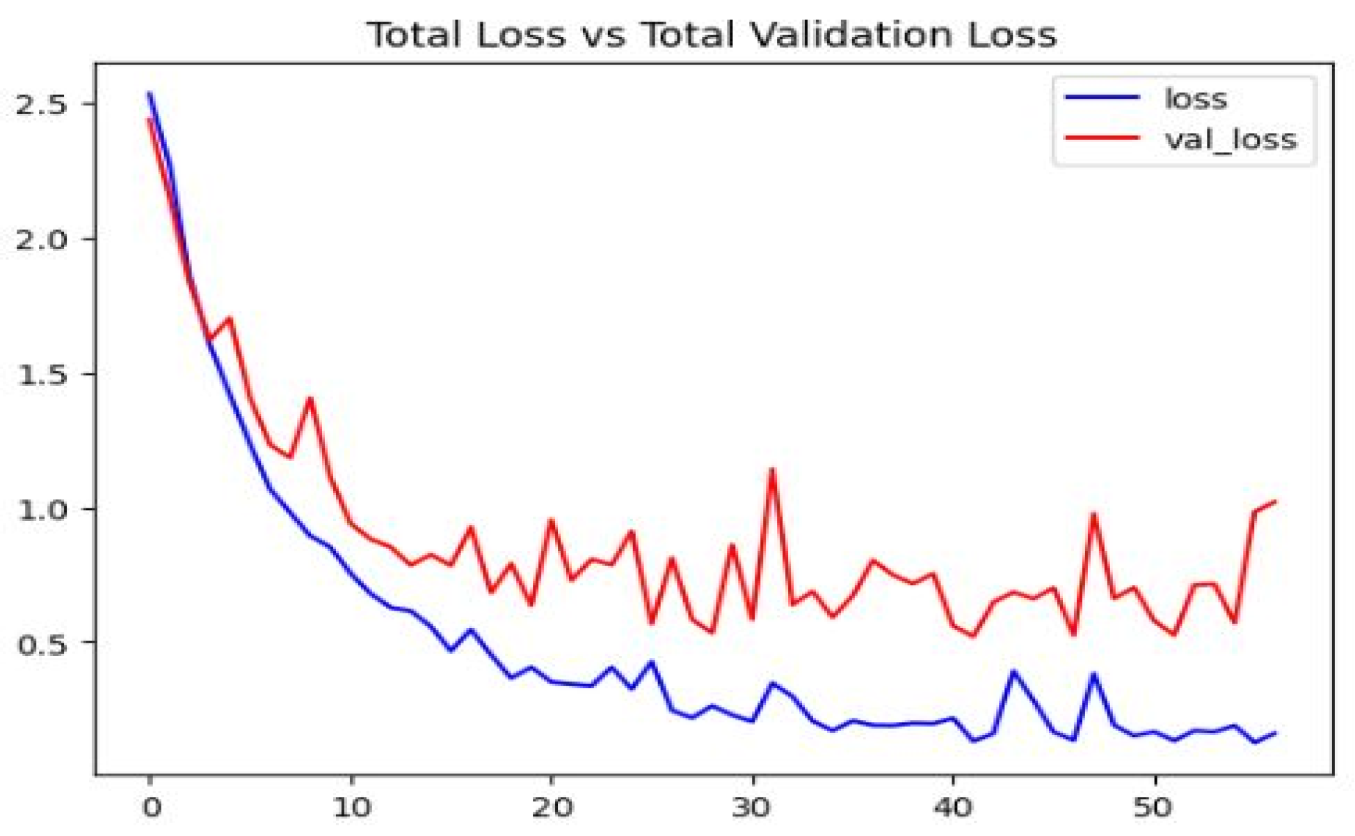 The total Loss vs. Validation Loss graph as shown in