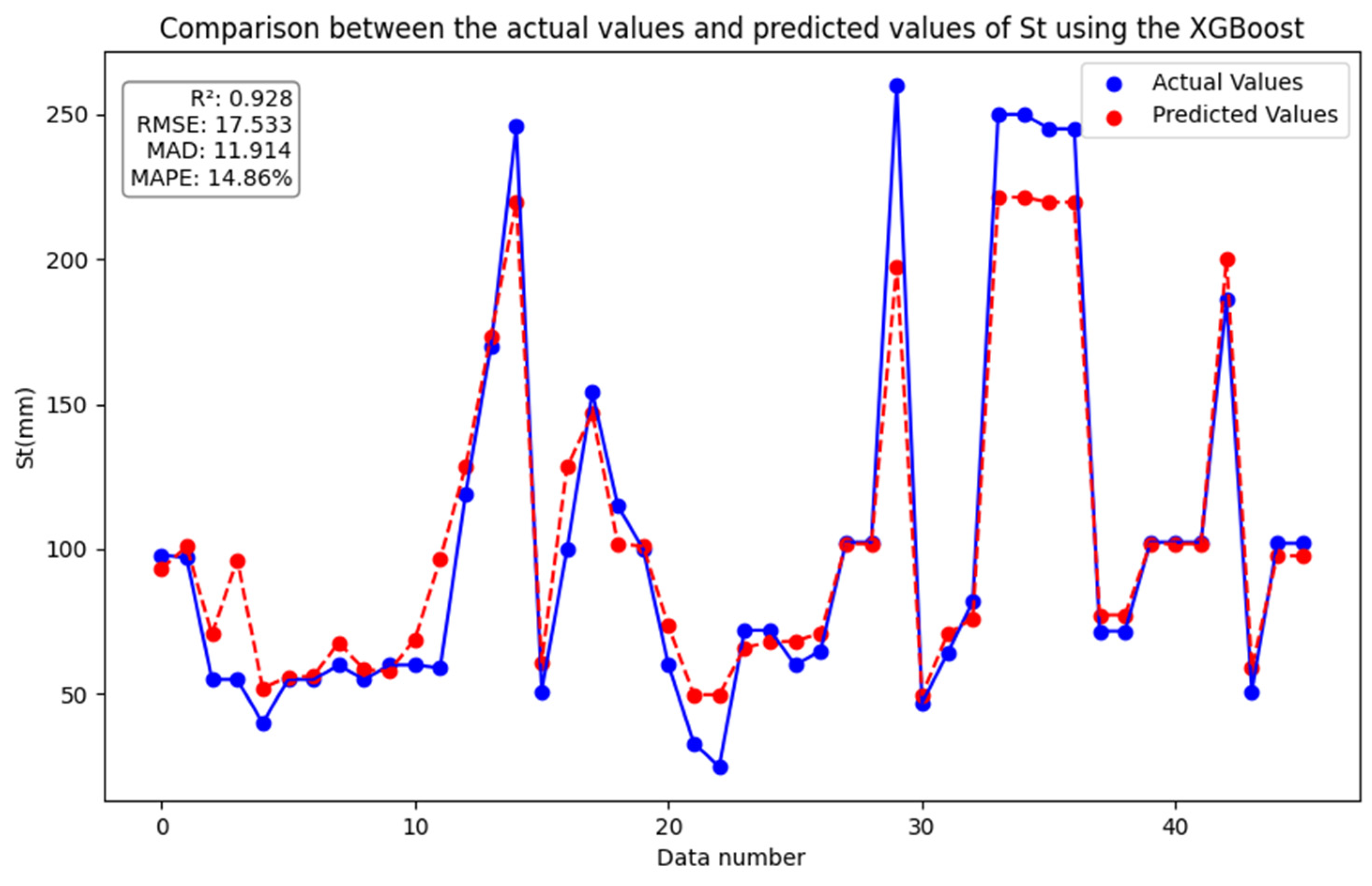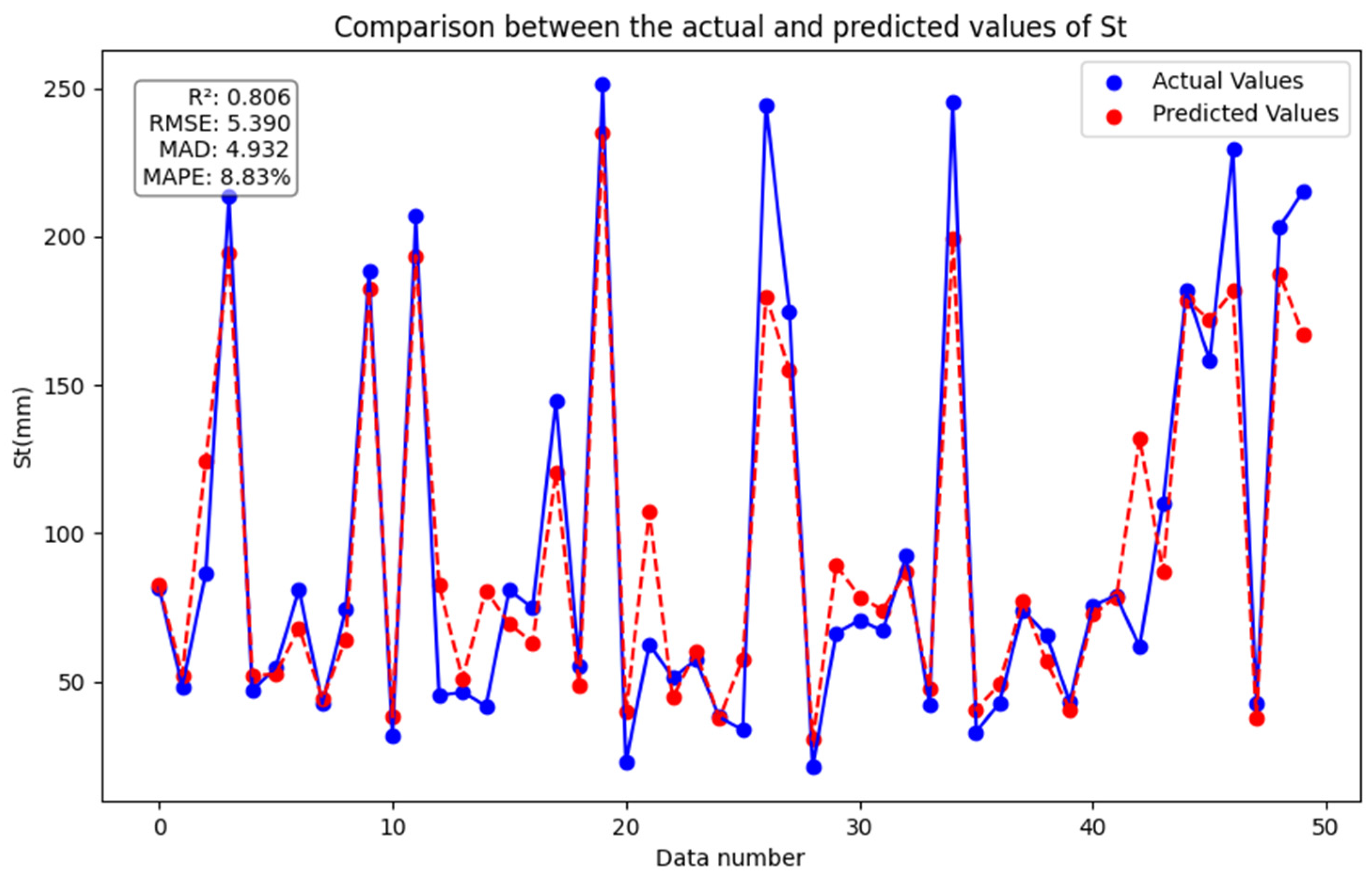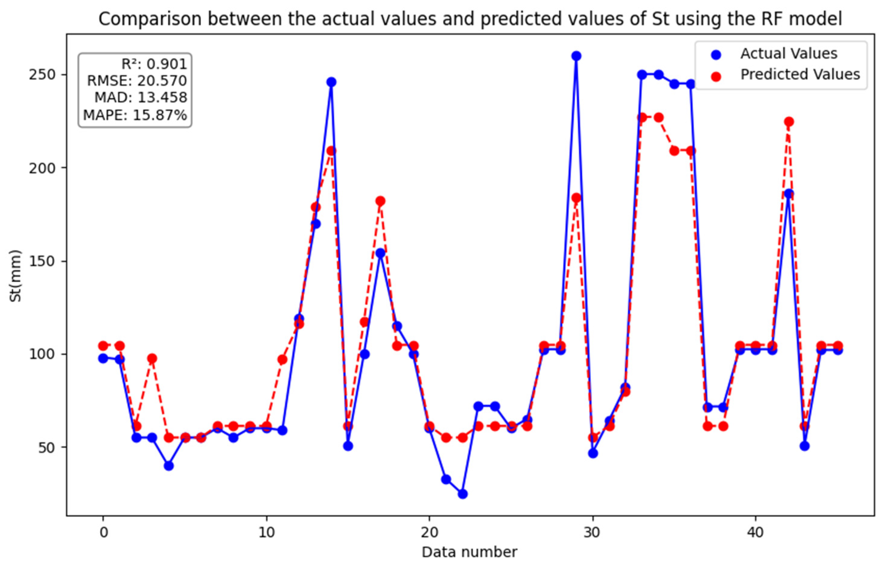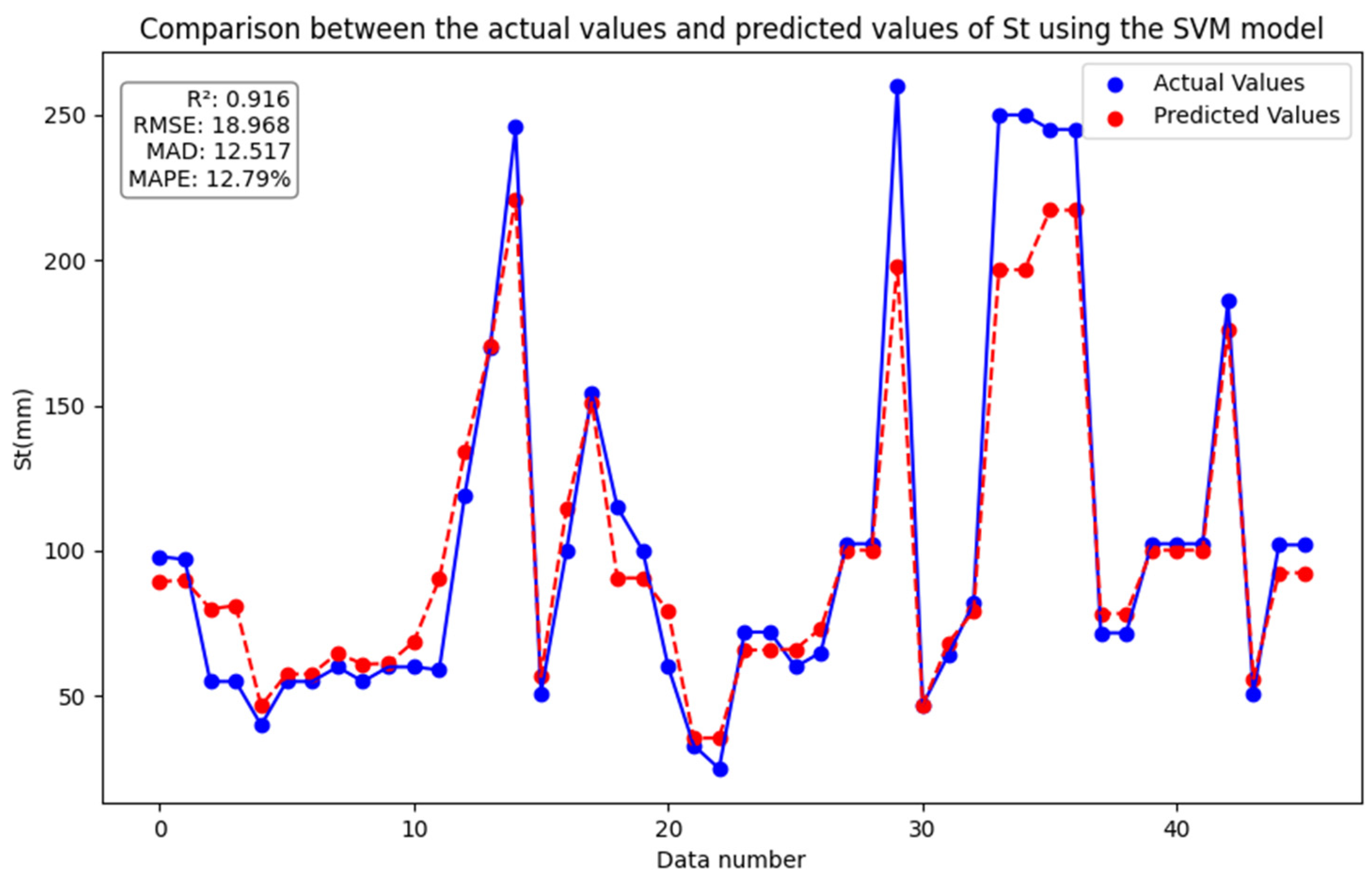 - This study compared the SVM-ensemble RF model with traditional methods and single machine learning models. The results showed that the SVM-ensemble RF model performed best across all evaluation metrics. This further validates that the integrated model proposed in this study can achieve more realistic and accurate settlement predictions, providing a reference for geotechnical engineering practice.