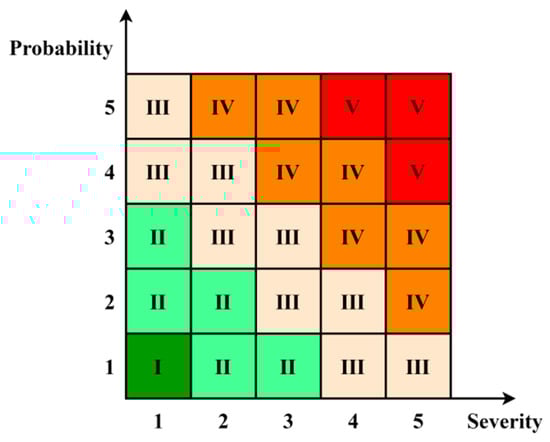 The risk level can be calculated by coupling the probability and severity according to Equation (9).